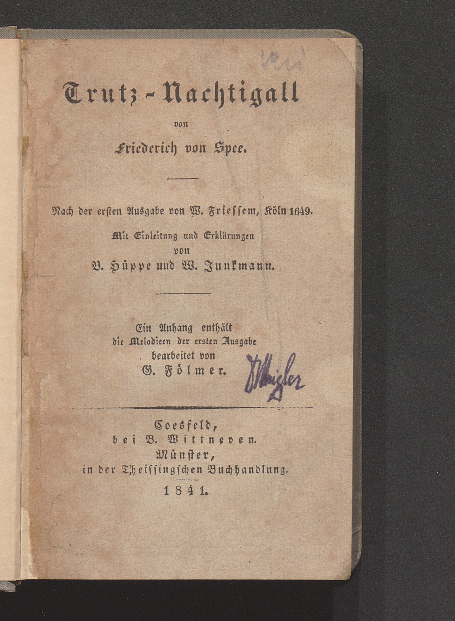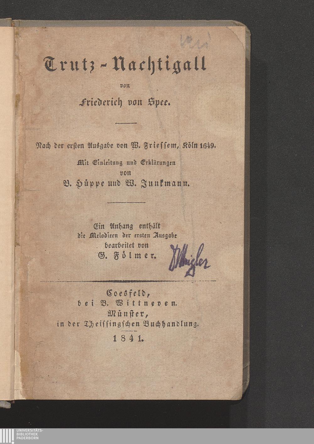 Trutz-Nachtigall : Ein Anhang enthält die Melodien der ersten Ausgabe / von Friederich von Spee