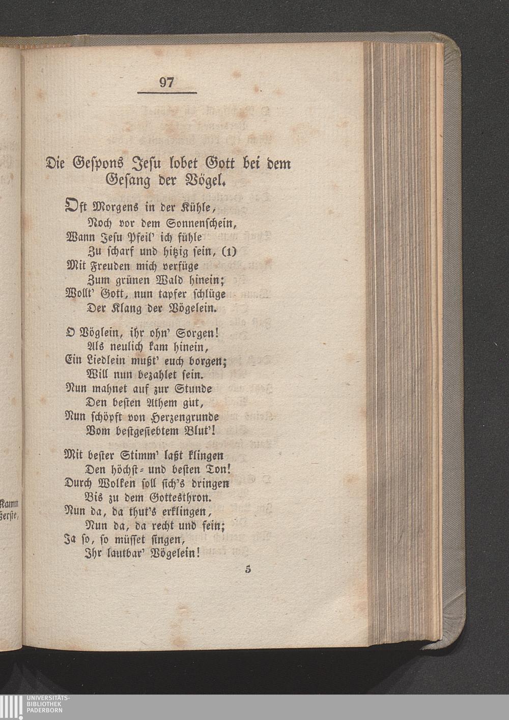 Die Gespons Jesu lobet Gott bei dem Gesang der Vögel.
