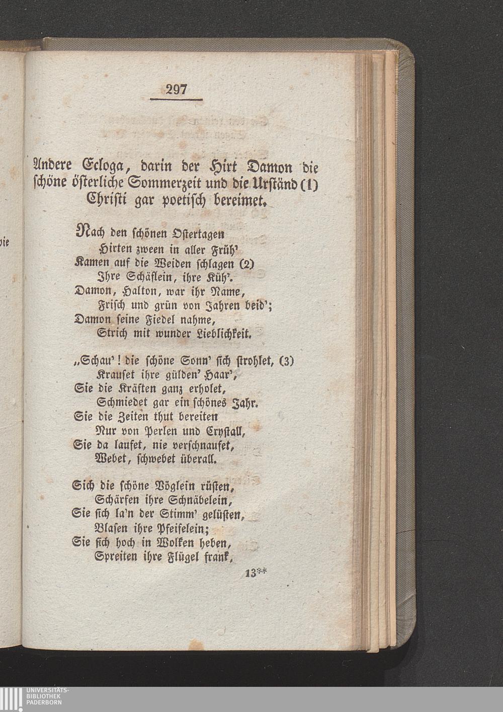 Andere Ecloga, darin der Hirt Damon die schöne österliche Sommerzeit und die Urständ[...]