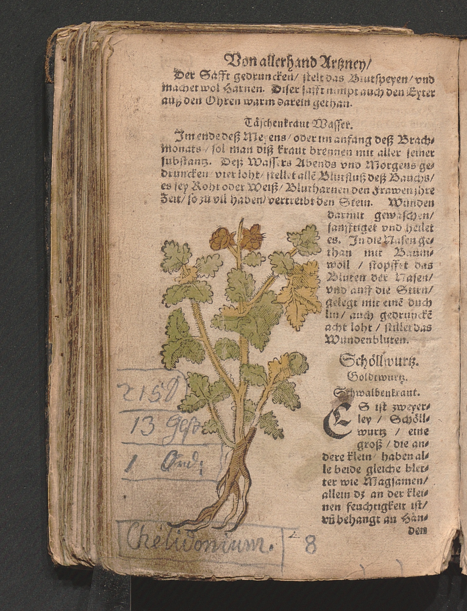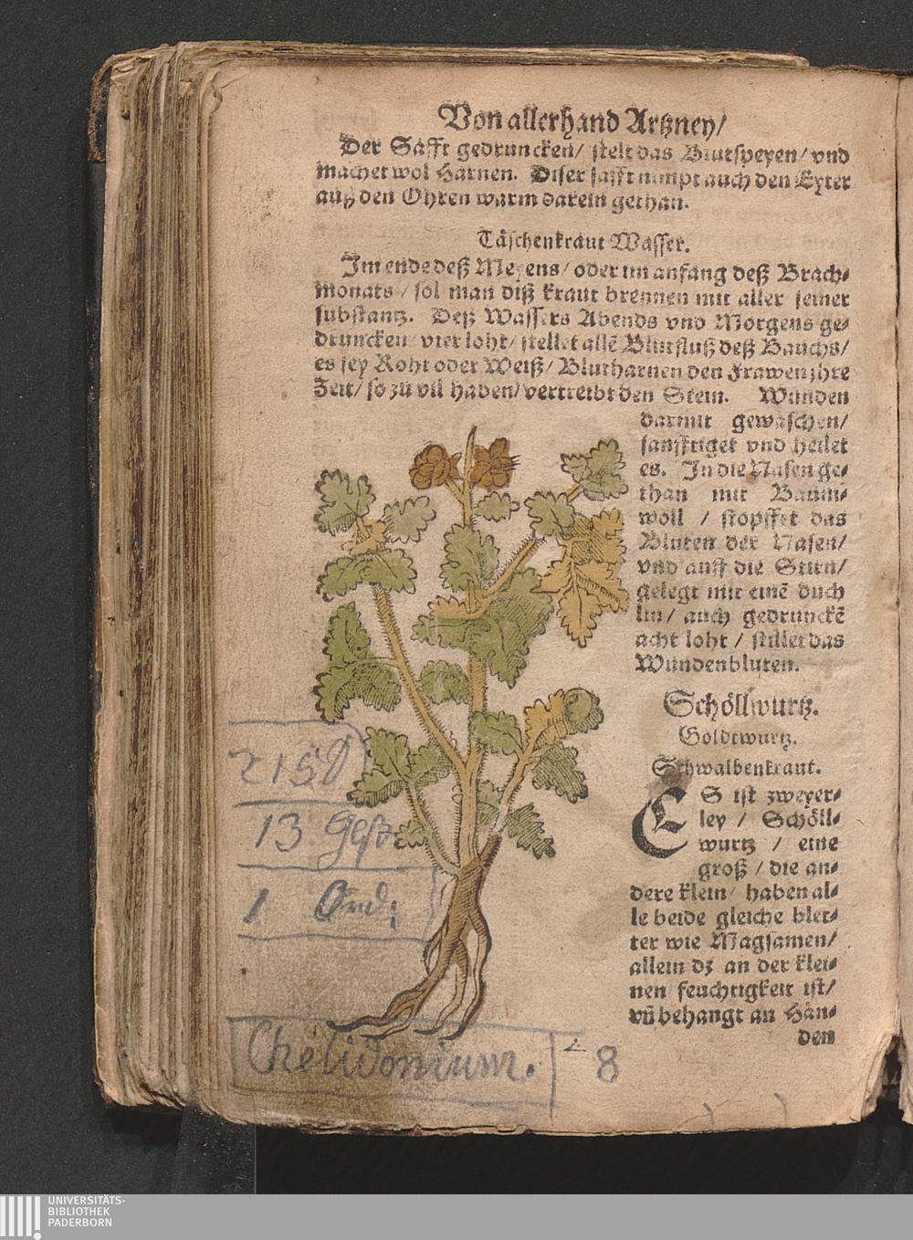 Kurtzes Handtbüchlein/ vnd Experiment/ vieler Artzneyen/ durch den gantzen Cörper des Menschens/ von dem Haupt biß auff die Füß : Sampt lebendiger Abcontrafactur etlicher der fürnembsten vnd gebreuchlichsten Kräutter/ vnd darauß gebranten vnd Distillierten Wassern/ Krafft vnd Tugendt / Durch den Hochgelehrten Q. Apollinarem selbs erfahren vnd bewehret