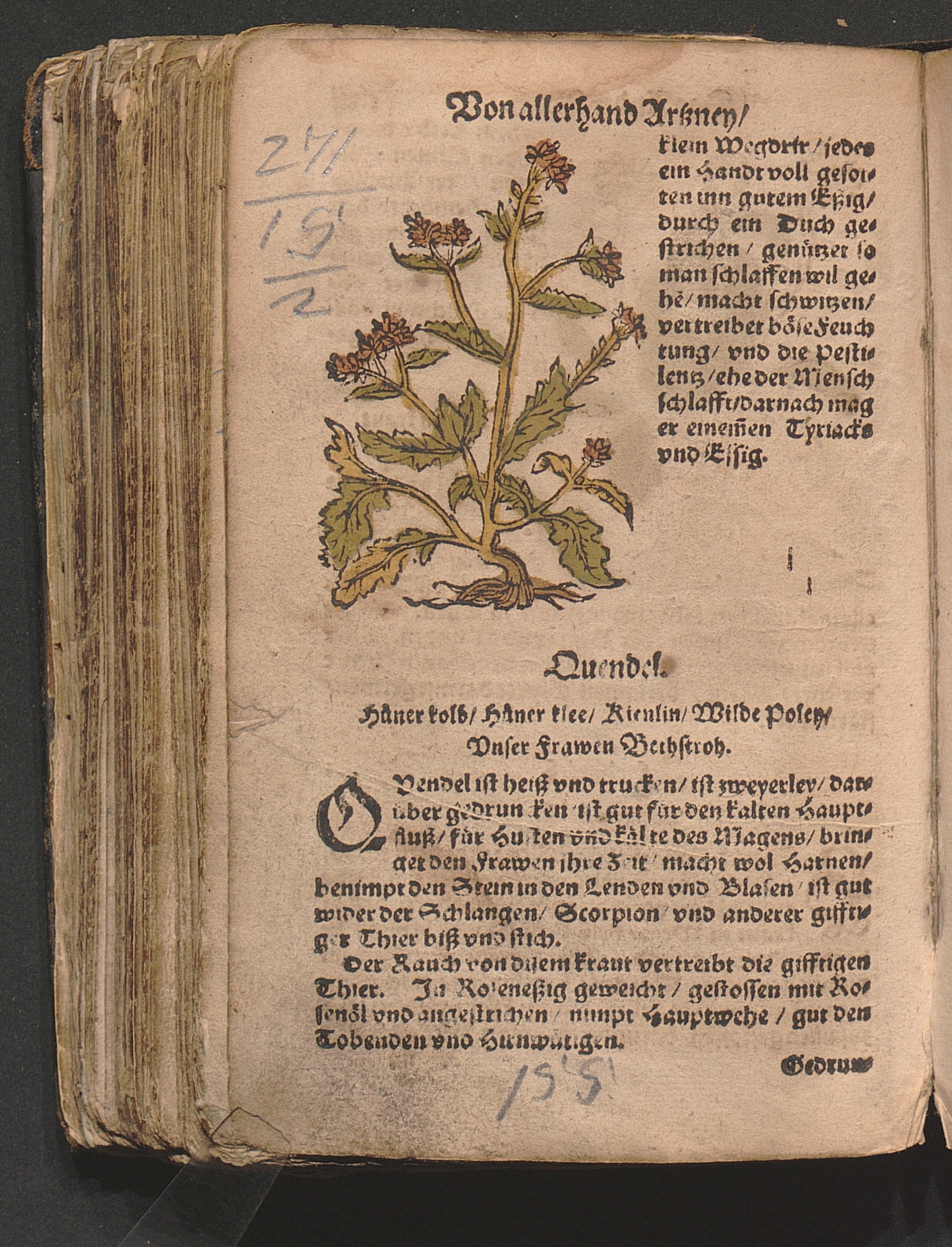 Kurtzes Handtbüchlein/ vnd Experiment/ vieler Artzneyen/ durch den gantzen Cörper des Menschens/ von dem Haupt biß auff die Füß : Sampt lebendiger Abcontrafactur etlicher der fürnembsten vnd gebreuchlichsten Kräutter/ vnd darauß gebranten vnd Distillierten Wassern/ Krafft vnd Tugendt / Durch den Hochgelehrten Q. Apollinarem selbs erfahren vnd bewehret