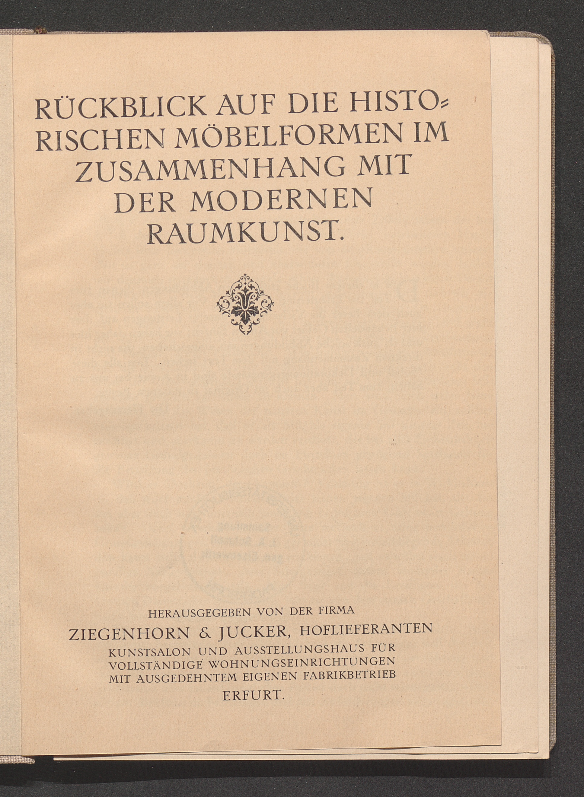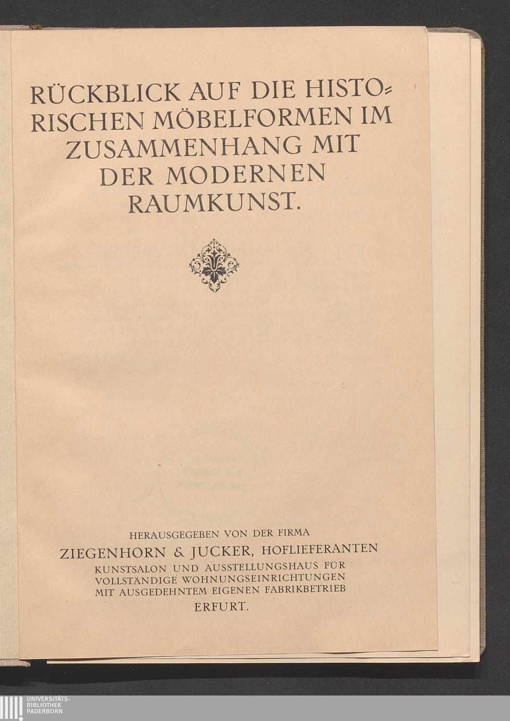 Rückblick auf die historischen Möbelformen im Zusammenhang mit der modernen Raumkunst / hrsg. von der Firma Ziegenhorn & Jucker, Hoflieferanten, Erfurt