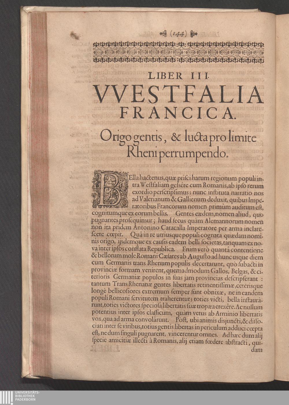 Historia VVestfaliæ : In qua in primis de origine gentis, De Priscis Hujus Regionis Populis, De bellis, quæ cum Romanis pro libertate gesserunt: Deinde De Origine Francorvm, Rhenum inter et Visurgim degentium, et quomodo hi pro libertate gentis, et limite Rheni tuendo decertârunt: Tum De Saxonia Christiana, à Carolo M. post trecennale bellum subactâ, atque ad fidem Christi perductâ ... tractatur. Opus Posthumum / Auctore R. P. Nicolao Schaten Societatis Jesu
