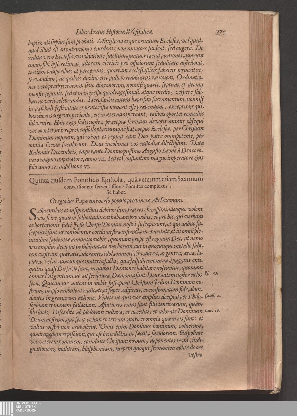 Historia VVestfaliæ : In qua in primis de origine gentis, De Priscis Hujus Regionis Populis, De bellis, quæ cum Romanis pro libertate gesserunt: Deinde De Origine Francorvm, Rhenum inter et Visurgim degentium, et quomodo hi pro libertate gentis, et limite Rheni tuendo decertârunt: Tum De Saxonia Christiana, à Carolo M. post trecennale bellum subactâ, atque ad fidem Christi perductâ ... tractatur. Opus Posthumum / Auctore R. P. Nicolao Schaten Societatis Jesu