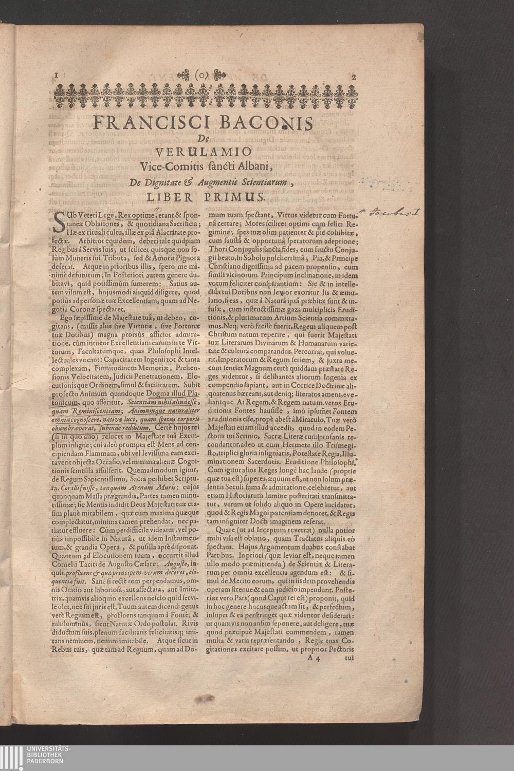 Francisci Baconi Baronis de Verulamio, Vice-Comitis S. Albani, Summi Angliæ Cancellarii, Opera omnia, Quæ extant: Philosophica, Moralia, Politica, Historica ... : In Quibus Complures Alii Tractatus, Quos Brevitatis Causa prætermittere visum est, comprehensi sunt ; Hactenus Nunquam Conjunctim Edita, Iam vero Summo Studio Collecta, Uno Volumine Comprehensa, & ab innumeris Mendis repurgata ; Cum Indice Rerum ac Verborum Vniversali absolutissimo ; His Præfixa Est Auctoris Vita