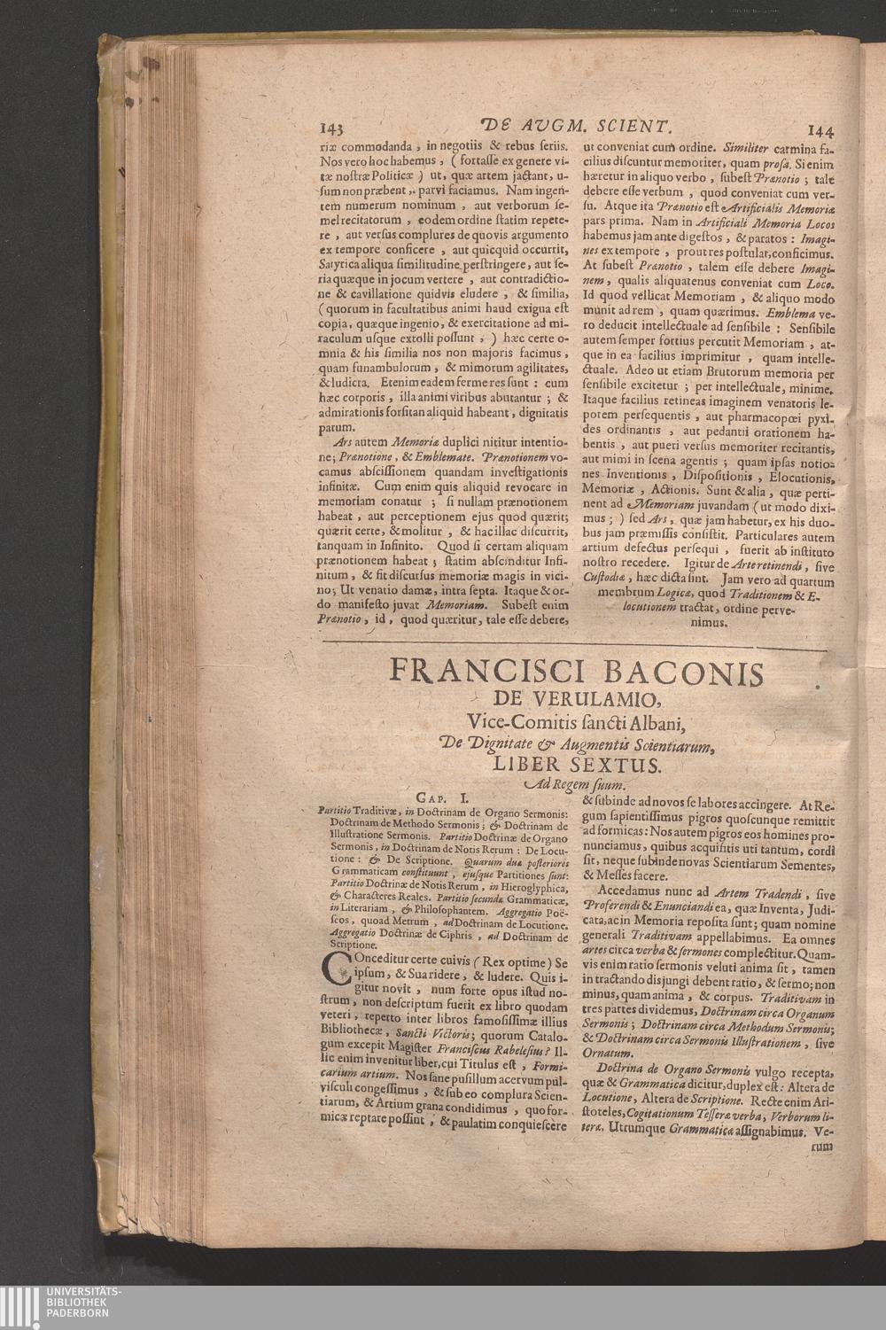 Francisci Baconi Baronis de Verulamio, Vice-Comitis S. Albani, Summi Angliæ Cancellarii, Opera omnia, Quæ extant: Philosophica, Moralia, Politica, Historica ... : In Quibus Complures Alii Tractatus, Quos Brevitatis Causa prætermittere visum est, comprehensi sunt ; Hactenus Nunquam Conjunctim Edita, Iam vero Summo Studio Collecta, Uno Volumine Comprehensa, & ab innumeris Mendis repurgata ; Cum Indice Rerum ac Verborum Vniversali absolutissimo ; His Præfixa Est Auctoris Vita