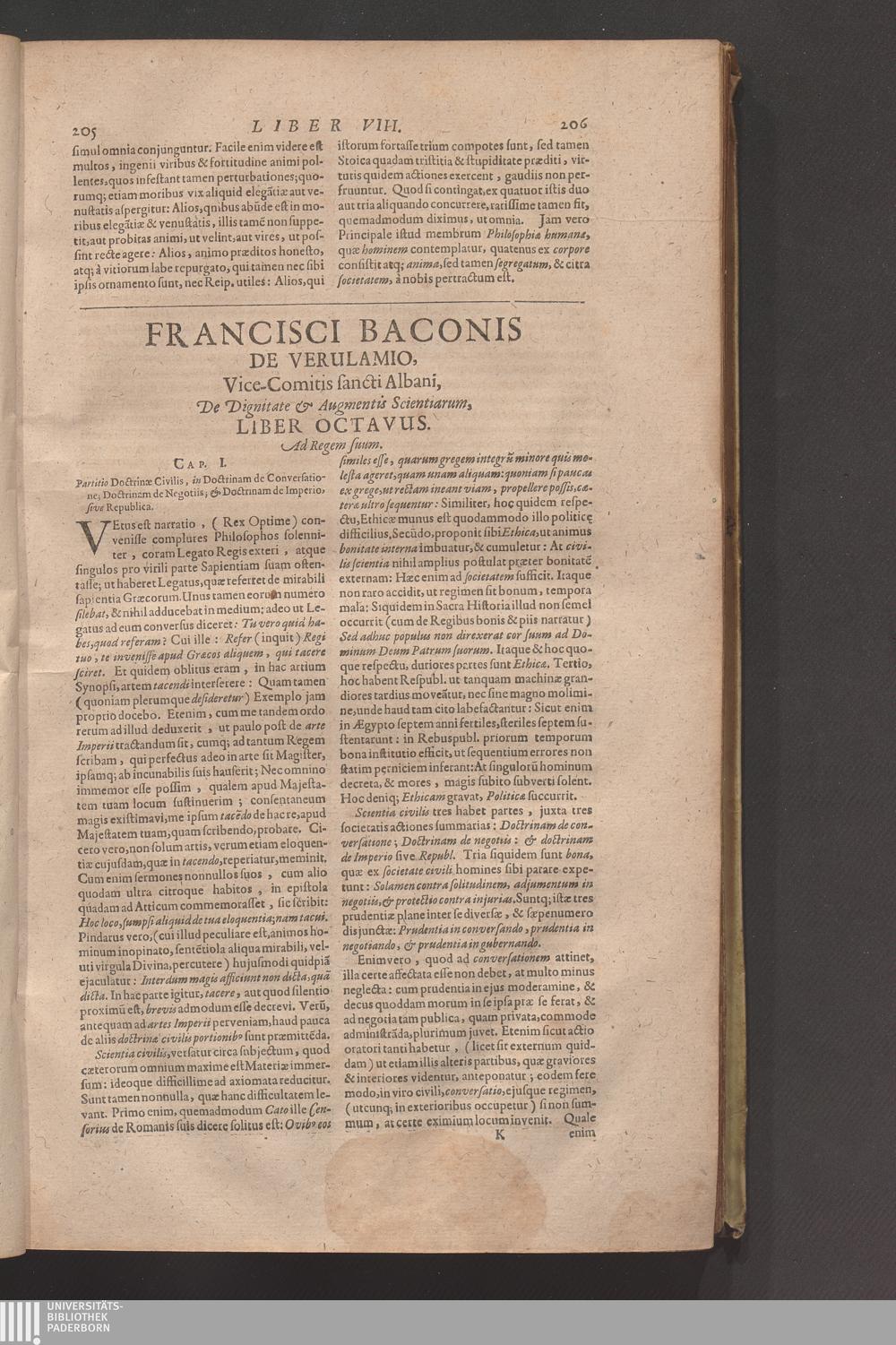 Francisci Baconi Baronis de Verulamio, Vice-Comitis S. Albani, Summi Angliæ Cancellarii, Opera omnia, Quæ extant: Philosophica, Moralia, Politica, Historica ... : In Quibus Complures Alii Tractatus, Quos Brevitatis Causa prætermittere visum est, comprehensi sunt ; Hactenus Nunquam Conjunctim Edita, Iam vero Summo Studio Collecta, Uno Volumine Comprehensa, & ab innumeris Mendis repurgata ; Cum Indice Rerum ac Verborum Vniversali absolutissimo ; His Præfixa Est Auctoris Vita