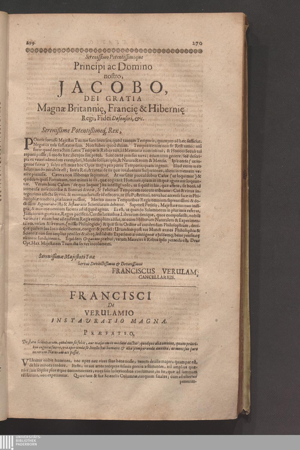 Francisci Baconi Baronis de Verulamio, Vice-Comitis S. Albani, Summi Angliæ Cancellarii, Opera omnia, Quæ extant: Philosophica, Moralia, Politica, Historica ... : In Quibus Complures Alii Tractatus, Quos Brevitatis Causa prætermittere visum est, comprehensi sunt ; Hactenus Nunquam Conjunctim Edita, Iam vero Summo Studio Collecta, Uno Volumine Comprehensa, & ab innumeris Mendis repurgata ; Cum Indice Rerum ac Verborum Vniversali absolutissimo ; His Præfixa Est Auctoris Vita