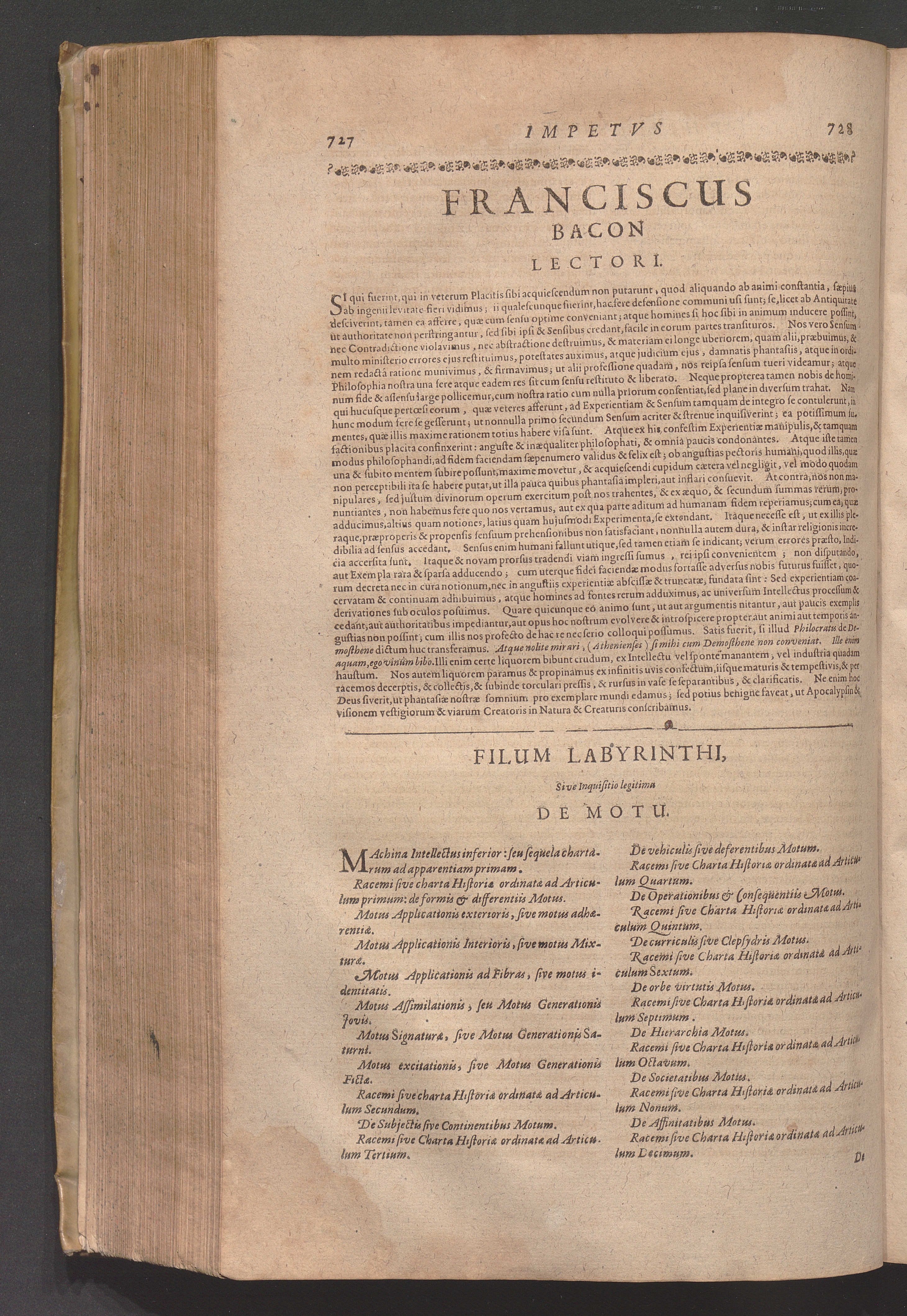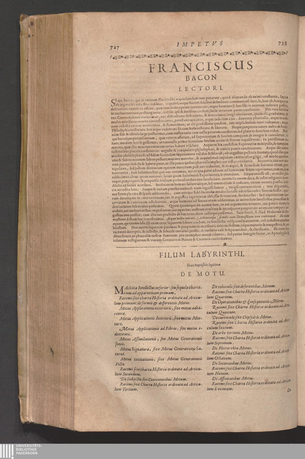 Francisci Baconi Baronis de Verulamio, Vice-Comitis S. Albani, Summi Angliæ Cancellarii, Opera omnia, Quæ extant: Philosophica, Moralia, Politica, Historica ... : In Quibus Complures Alii Tractatus, Quos Brevitatis Causa prætermittere visum est, comprehensi sunt ; Hactenus Nunquam Conjunctim Edita, Iam vero Summo Studio Collecta, Uno Volumine Comprehensa, & ab innumeris Mendis repurgata ; Cum Indice Rerum ac Verborum Vniversali absolutissimo ; His Præfixa Est Auctoris Vita