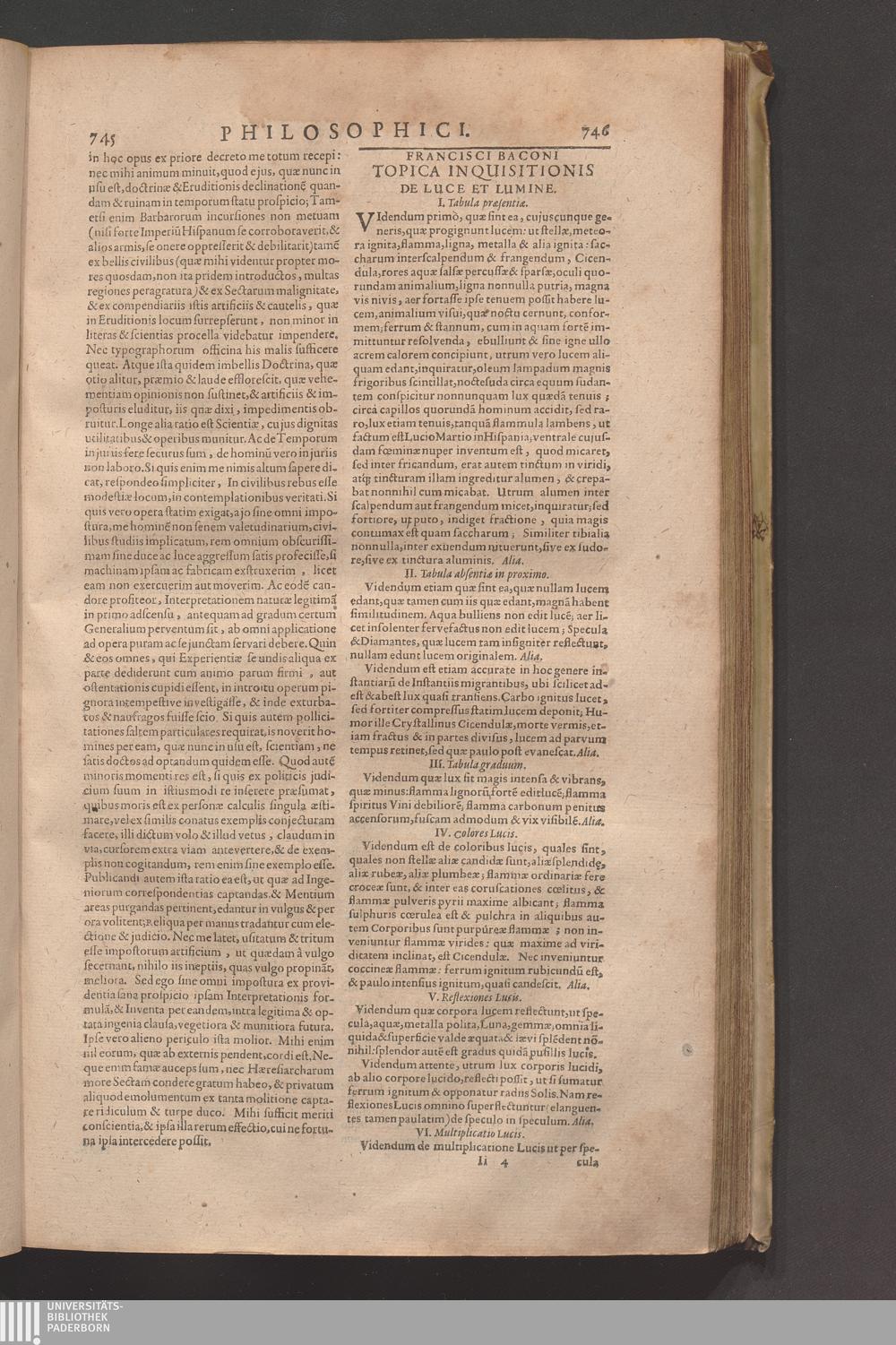 Francisci Baconi Baronis de Verulamio, Vice-Comitis S. Albani, Summi Angliæ Cancellarii, Opera omnia, Quæ extant: Philosophica, Moralia, Politica, Historica ... : In Quibus Complures Alii Tractatus, Quos Brevitatis Causa prætermittere visum est, comprehensi sunt ; Hactenus Nunquam Conjunctim Edita, Iam vero Summo Studio Collecta, Uno Volumine Comprehensa, & ab innumeris Mendis repurgata ; Cum Indice Rerum ac Verborum Vniversali absolutissimo ; His Præfixa Est Auctoris Vita