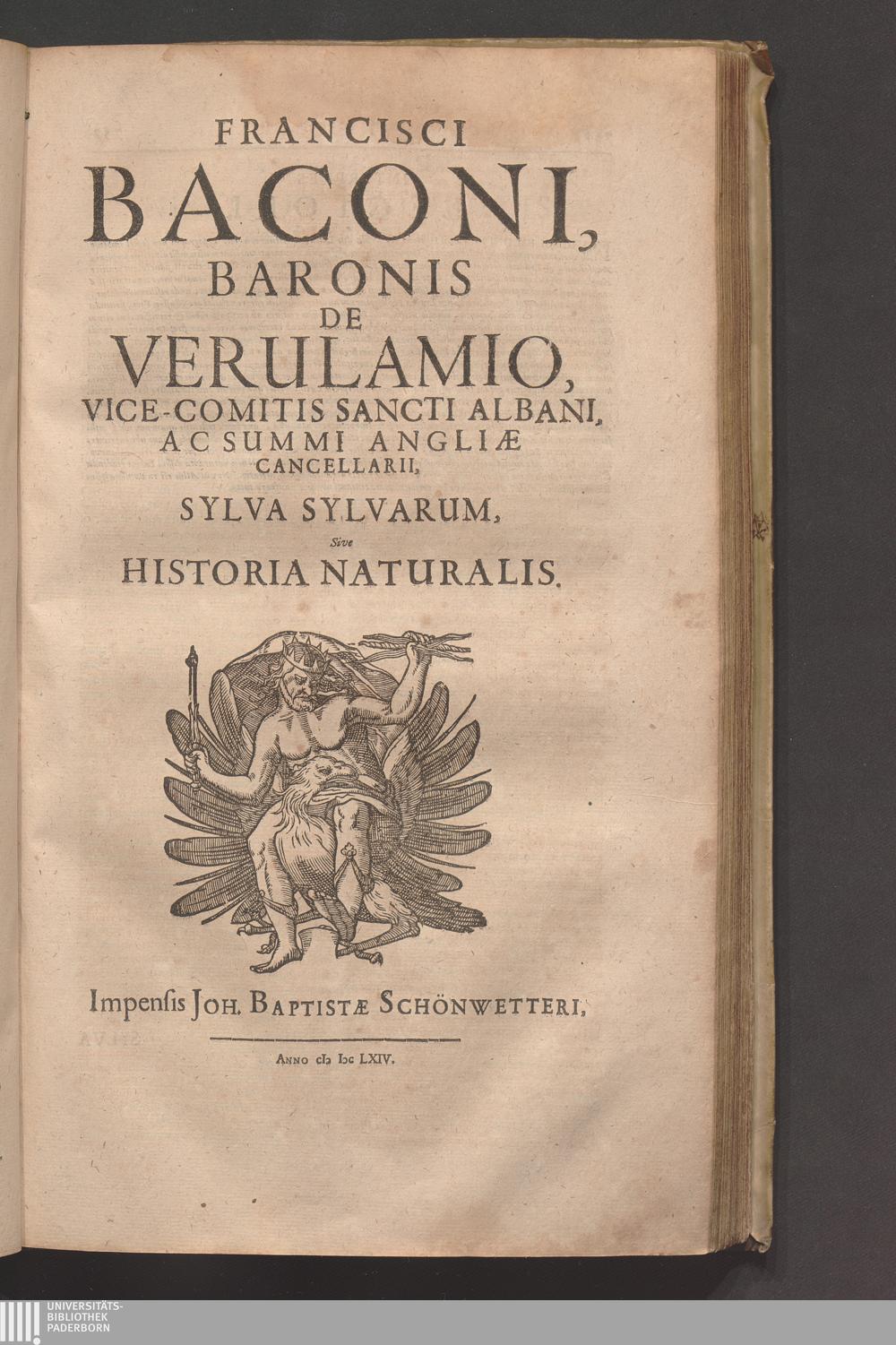 Francisci Baconi Baronis de Verulamio, Vice-Comitis S. Albani, Summi Angliæ Cancellarii, Opera omnia, Quæ extant: Philosophica, Moralia, Politica, Historica ... : In Quibus Complures Alii Tractatus, Quos Brevitatis Causa prætermittere visum est, comprehensi sunt ; Hactenus Nunquam Conjunctim Edita, Iam vero Summo Studio Collecta, Uno Volumine Comprehensa, & ab innumeris Mendis repurgata ; Cum Indice Rerum ac Verborum Vniversali absolutissimo ; His Præfixa Est Auctoris Vita