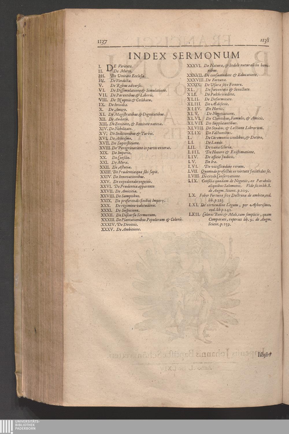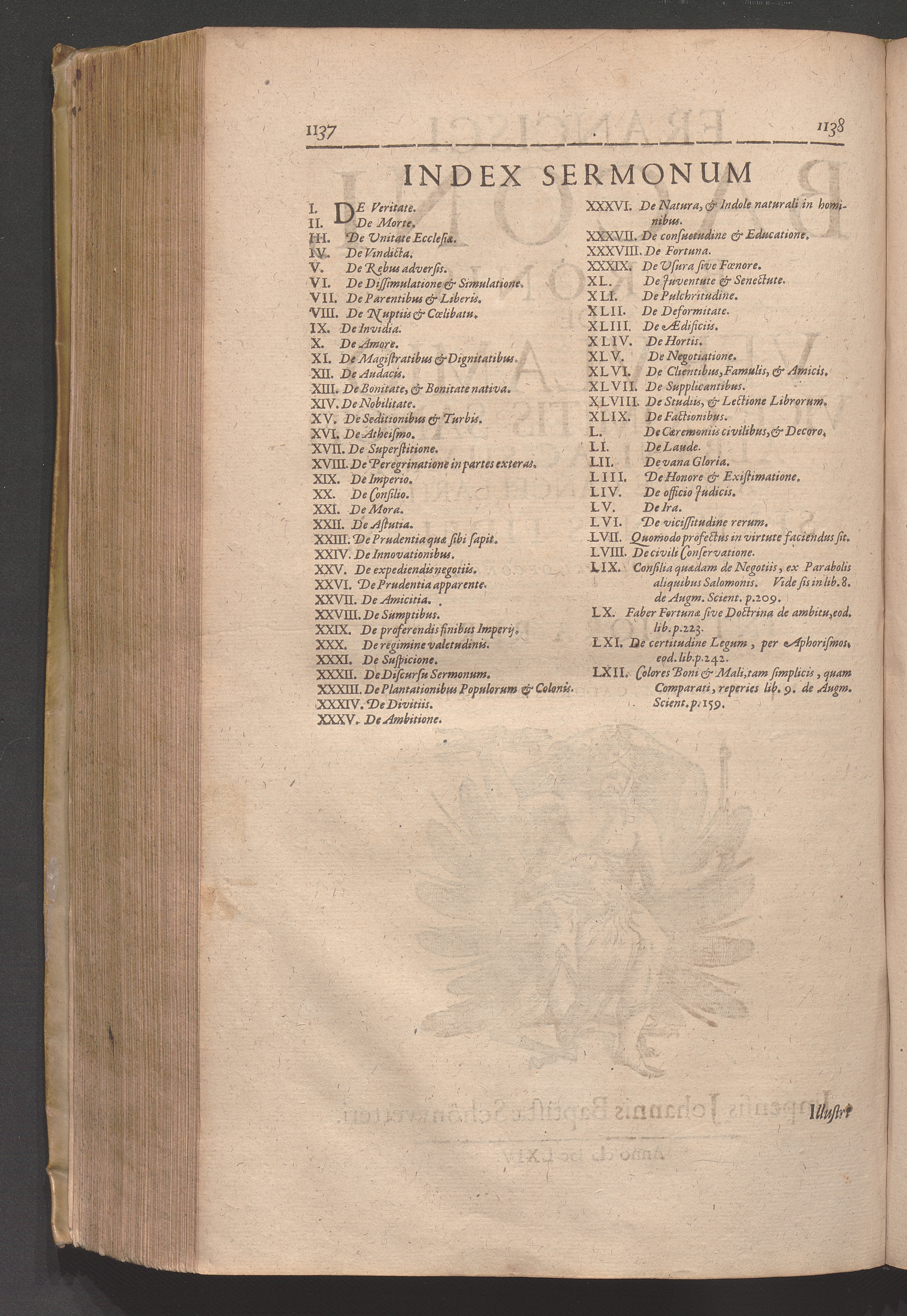 Francisci Baconi Baronis de Verulamio, Vice-Comitis S. Albani, Summi Angliæ Cancellarii, Opera omnia, Quæ extant: Philosophica, Moralia, Politica, Historica ... : In Quibus Complures Alii Tractatus, Quos Brevitatis Causa prætermittere visum est, comprehensi sunt ; Hactenus Nunquam Conjunctim Edita, Iam vero Summo Studio Collecta, Uno Volumine Comprehensa, & ab innumeris Mendis repurgata ; Cum Indice Rerum ac Verborum Vniversali absolutissimo ; His Præfixa Est Auctoris Vita