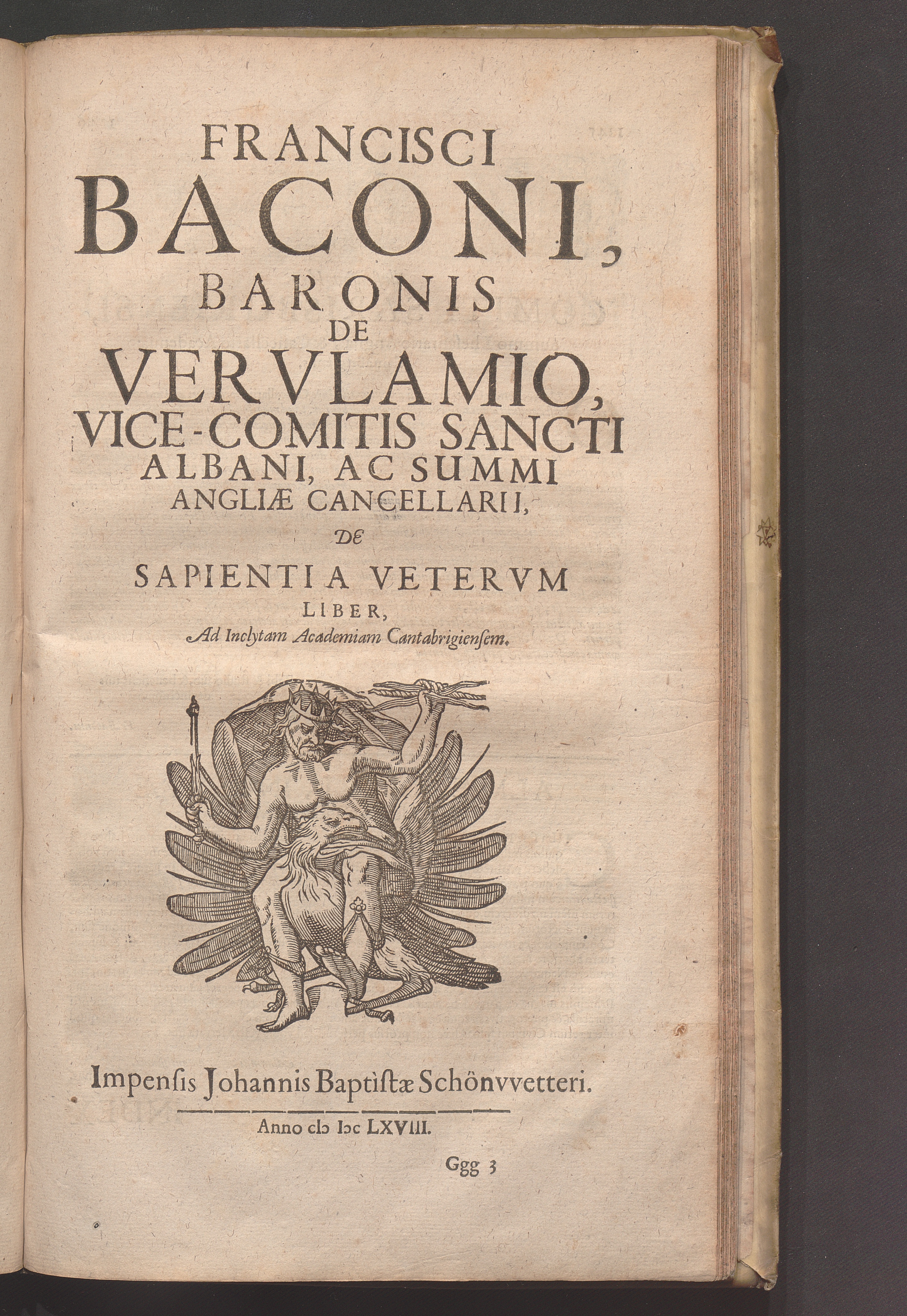Francisci Baconi Baronis de Verulamio, Vice-Comitis S. Albani, Summi Angliæ Cancellarii, Opera omnia, Quæ extant: Philosophica, Moralia, Politica, Historica ... : In Quibus Complures Alii Tractatus, Quos Brevitatis Causa prætermittere visum est, comprehensi sunt ; Hactenus Nunquam Conjunctim Edita, Iam vero Summo Studio Collecta, Uno Volumine Comprehensa, & ab innumeris Mendis repurgata ; Cum Indice Rerum ac Verborum Vniversali absolutissimo ; His Præfixa Est Auctoris Vita
