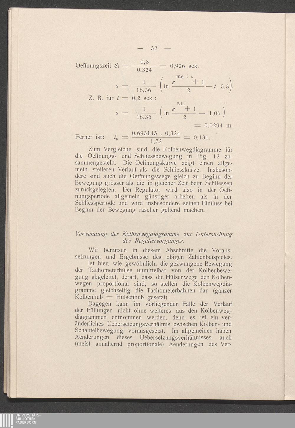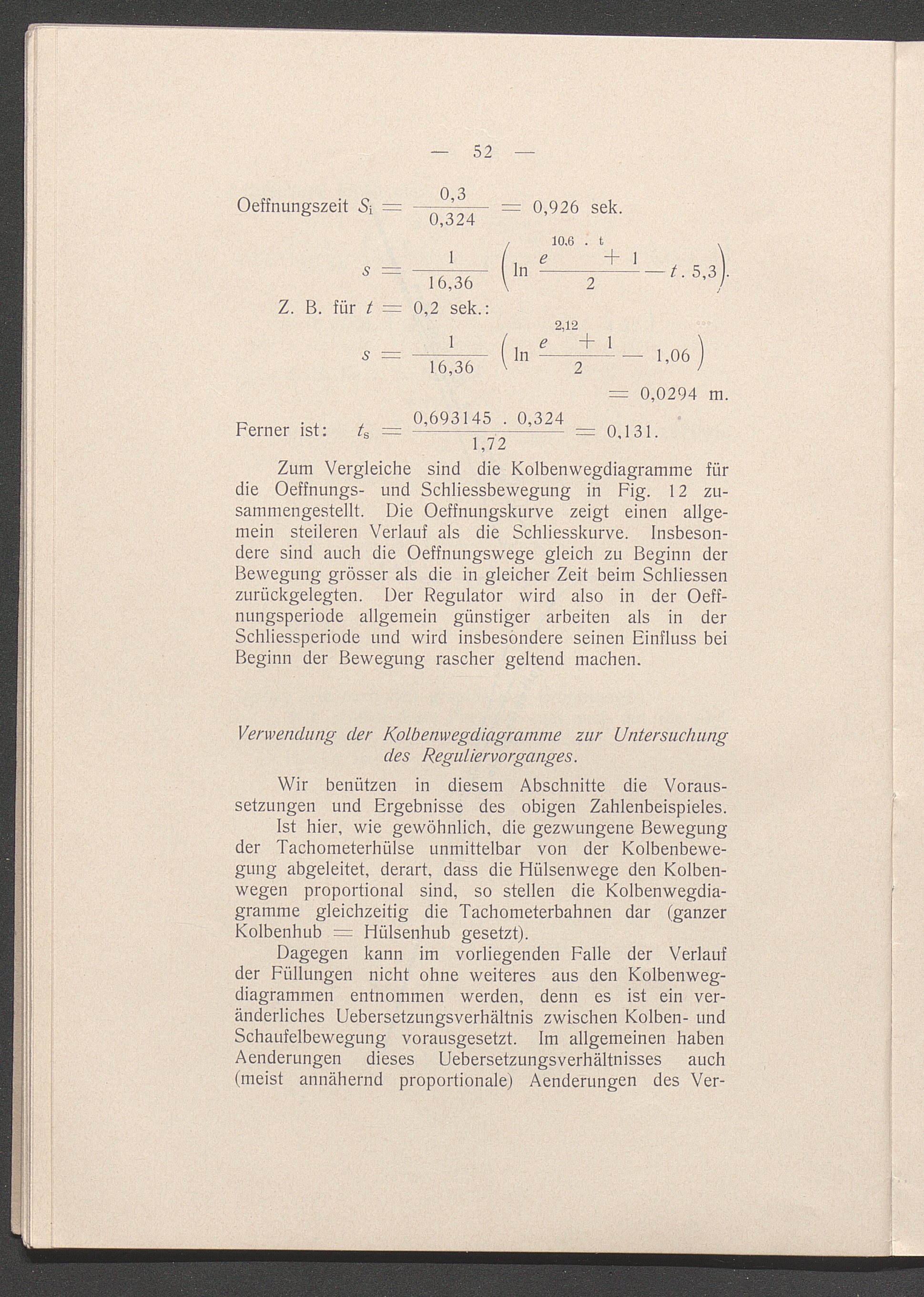Verwendung der Kolbenwegdiagramme zur Untersuchung des Reguliervorganges
