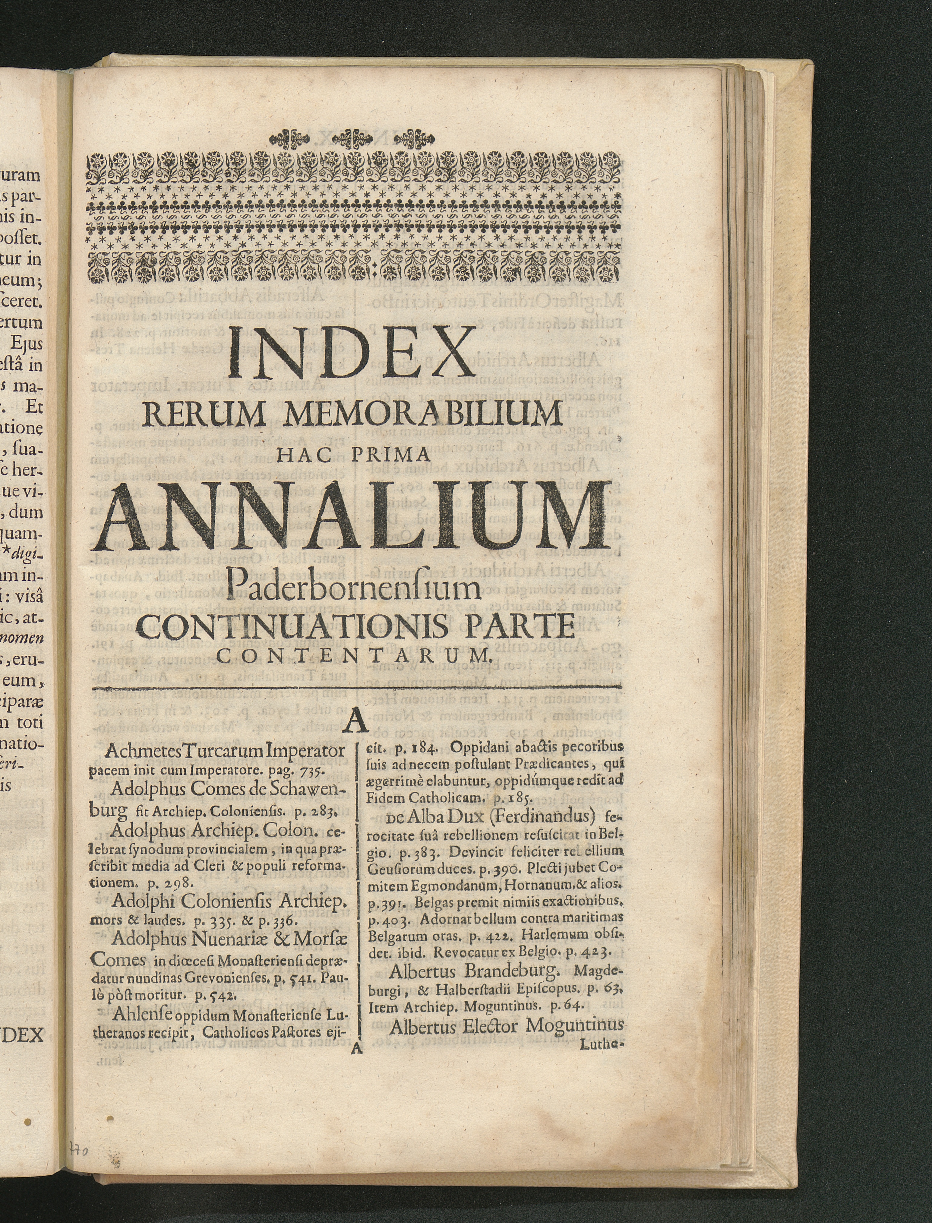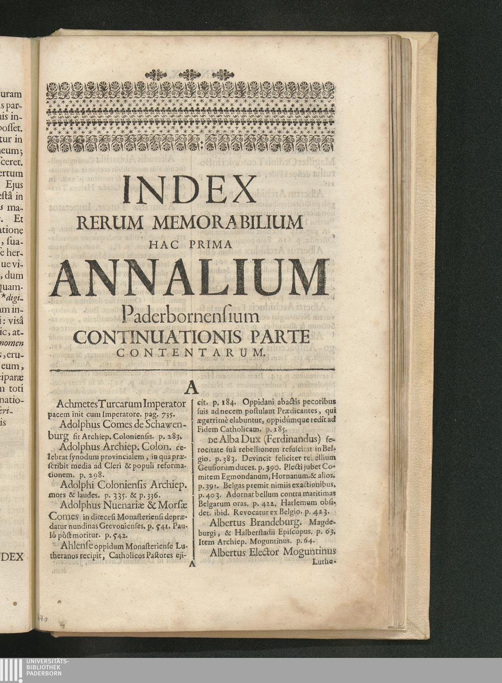 Index Rerum Memorabilium Hac Prima Annalium Paderbornensium Continuationis Parte Contentarum.