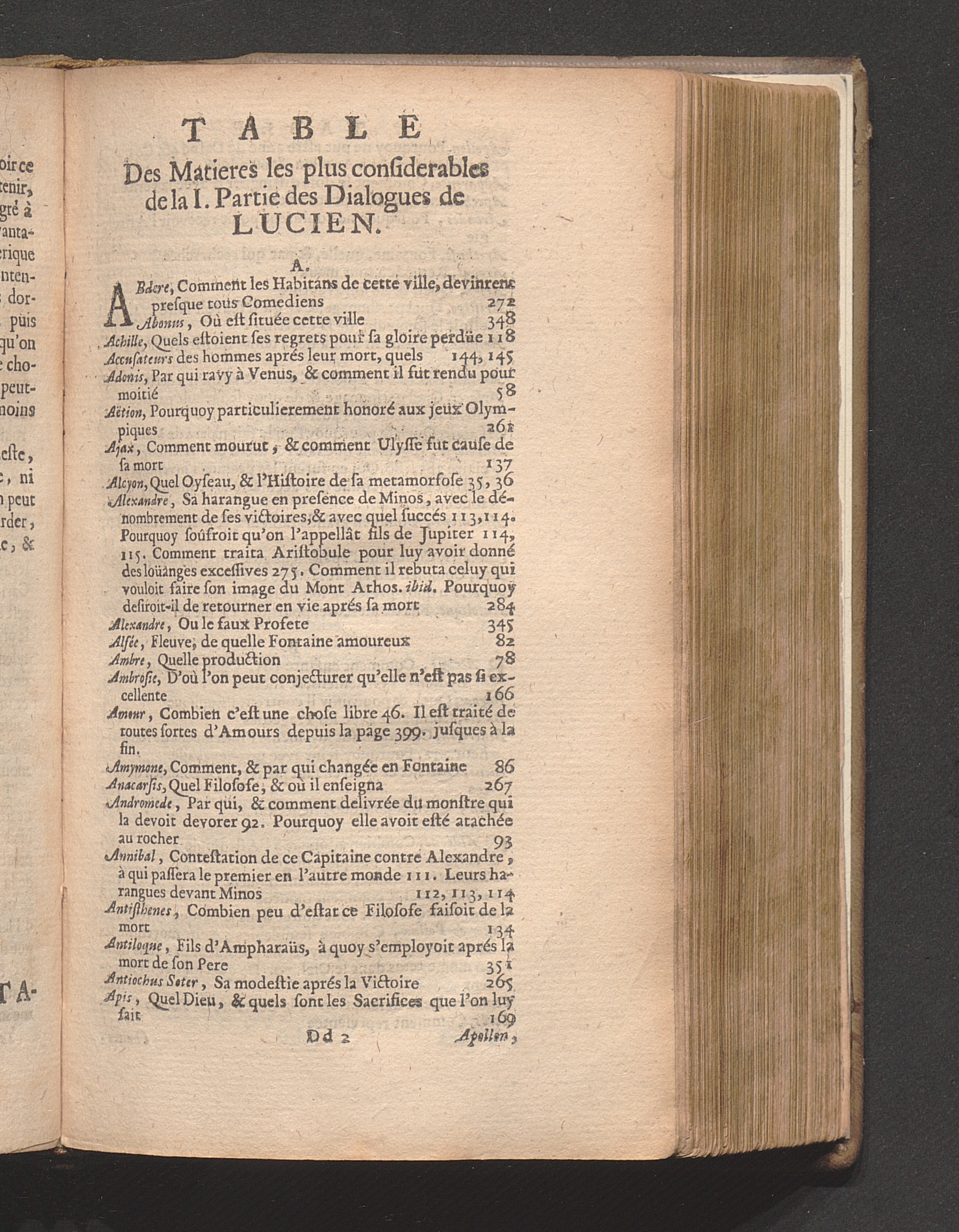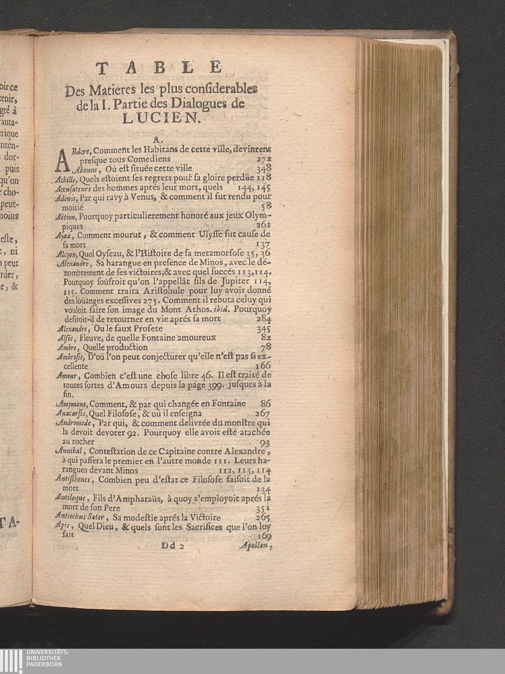 Table Des Matieres les plus considerables de la I. Partie des Dialgoues de Lucie[...]