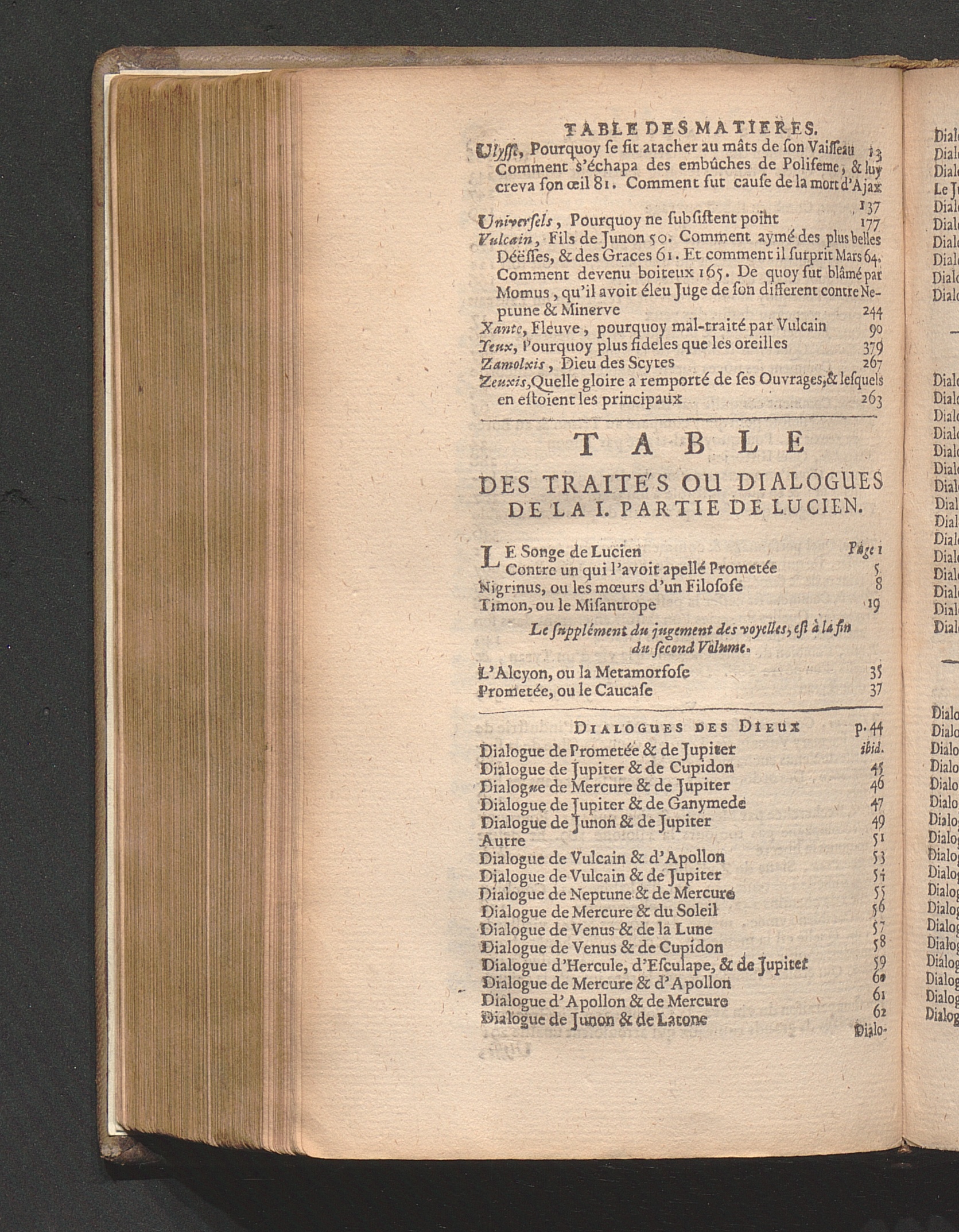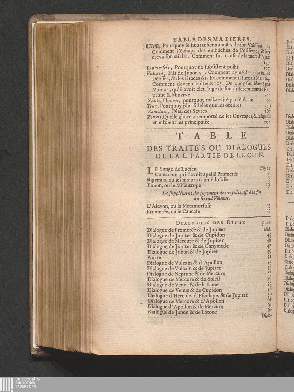 Table Des Traités Ou Dialoques De La I. Partie De Lucien.