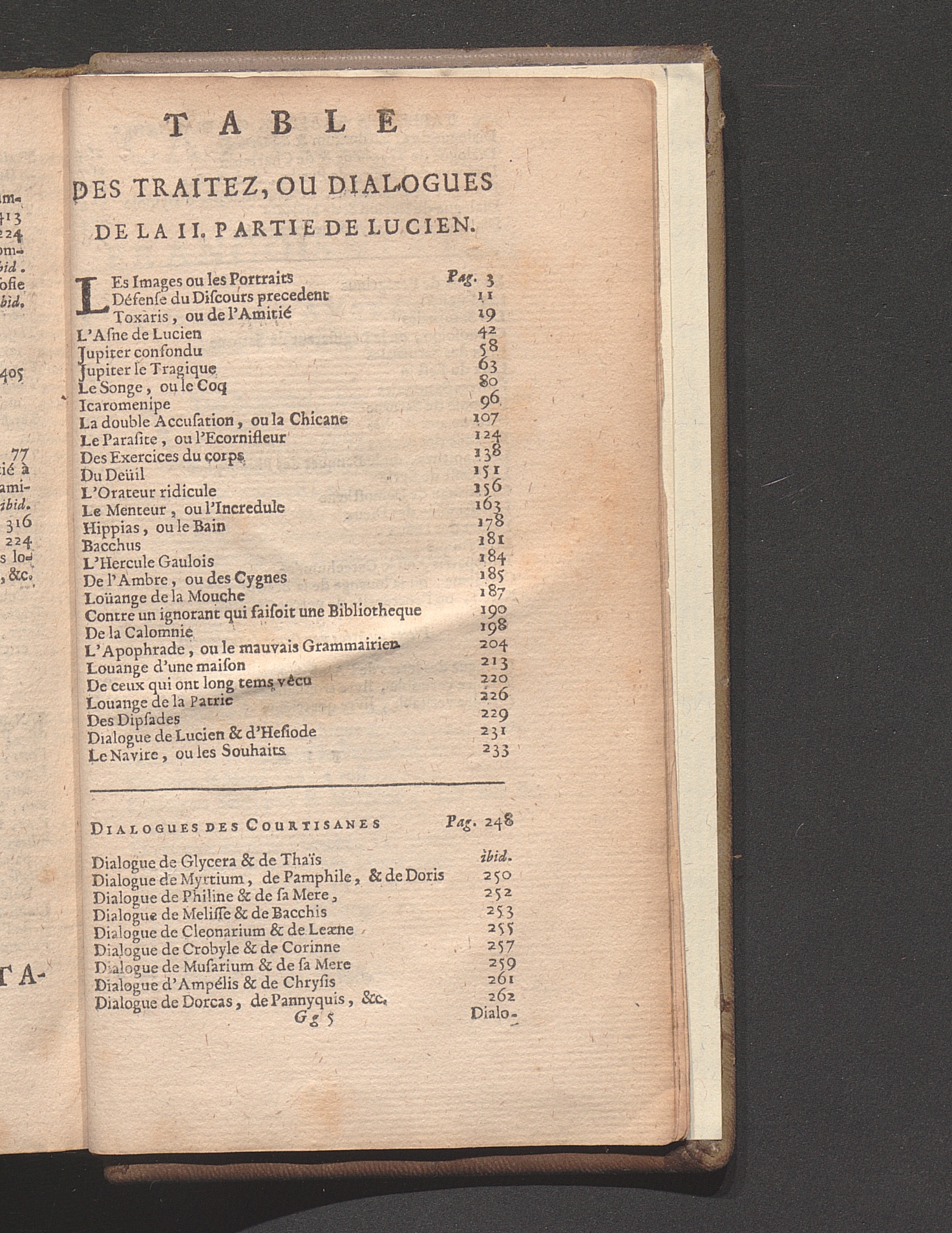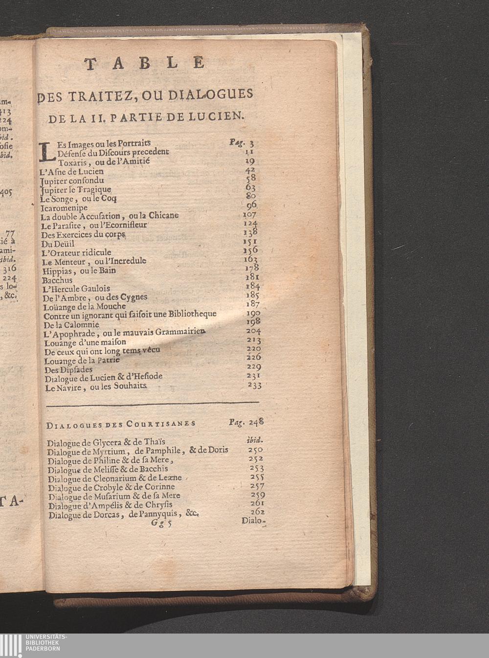 Table Des Traitez, Ou Dialogues De La II. Partie De Lucien.