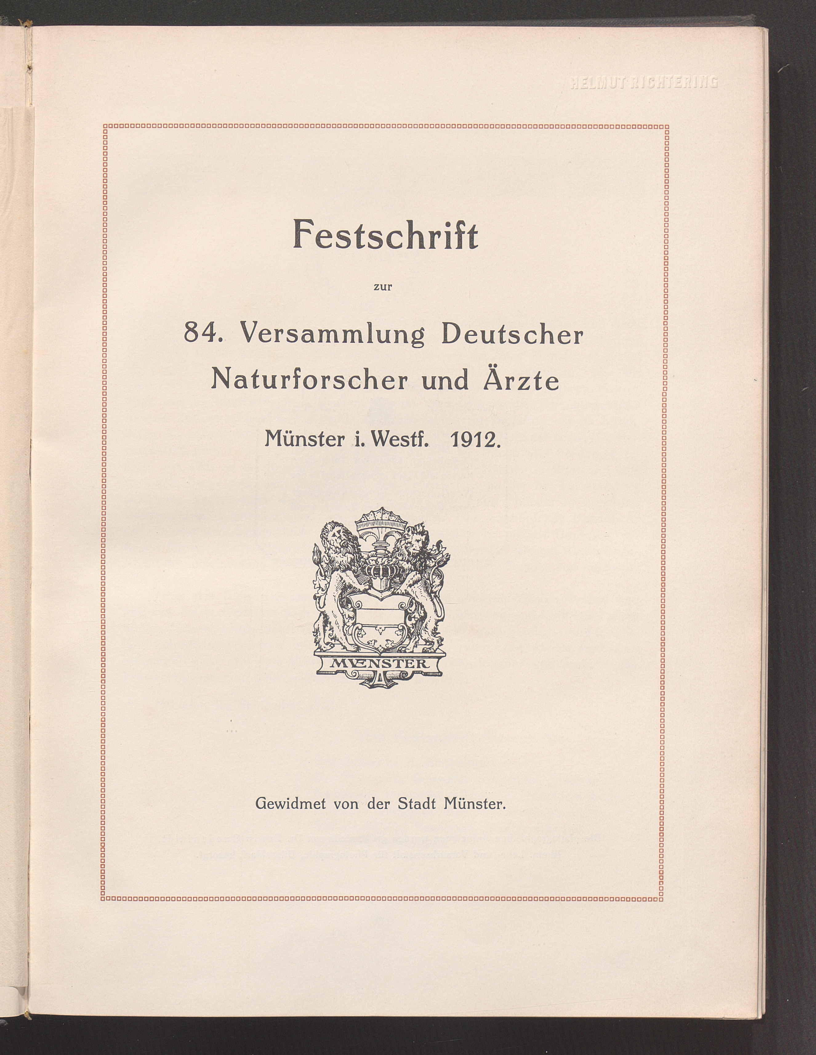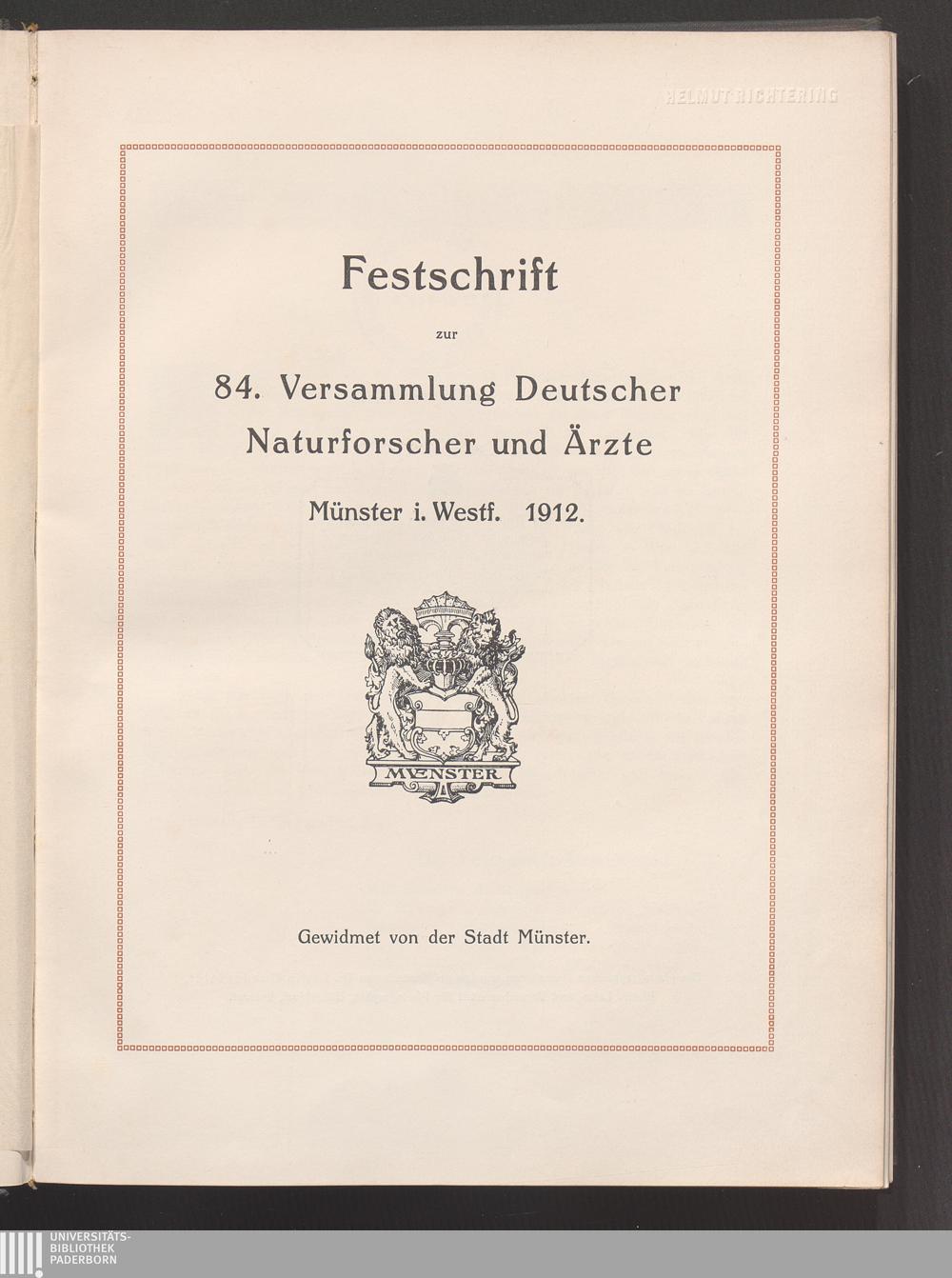 Festschrift zur 84. Versammlung Deutscher Naturforscher und Ärzte : Münster i. Westf. 1912 / gewidmet von der Stadt Münster