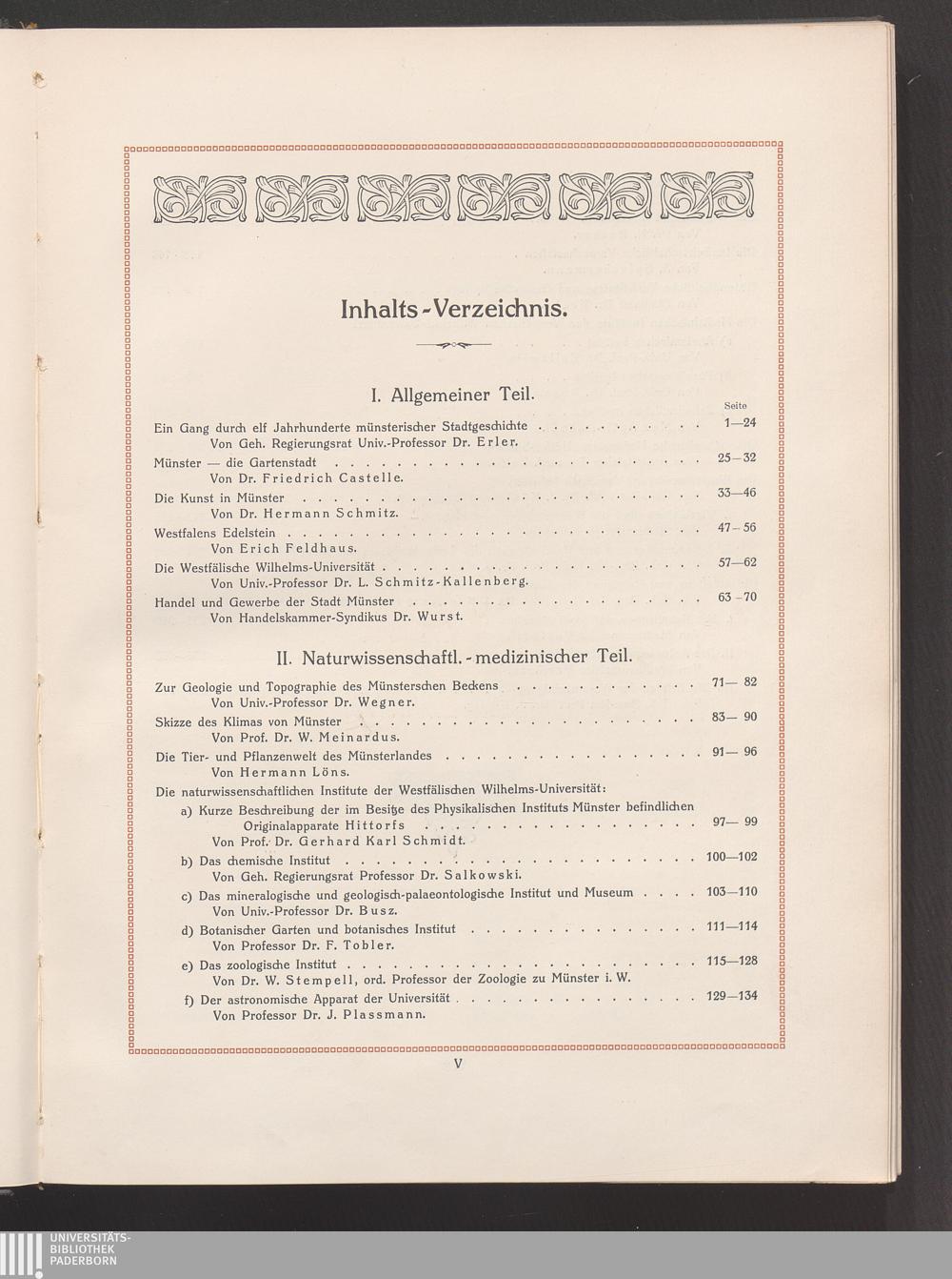 Inhalts-Verzeichnis.
