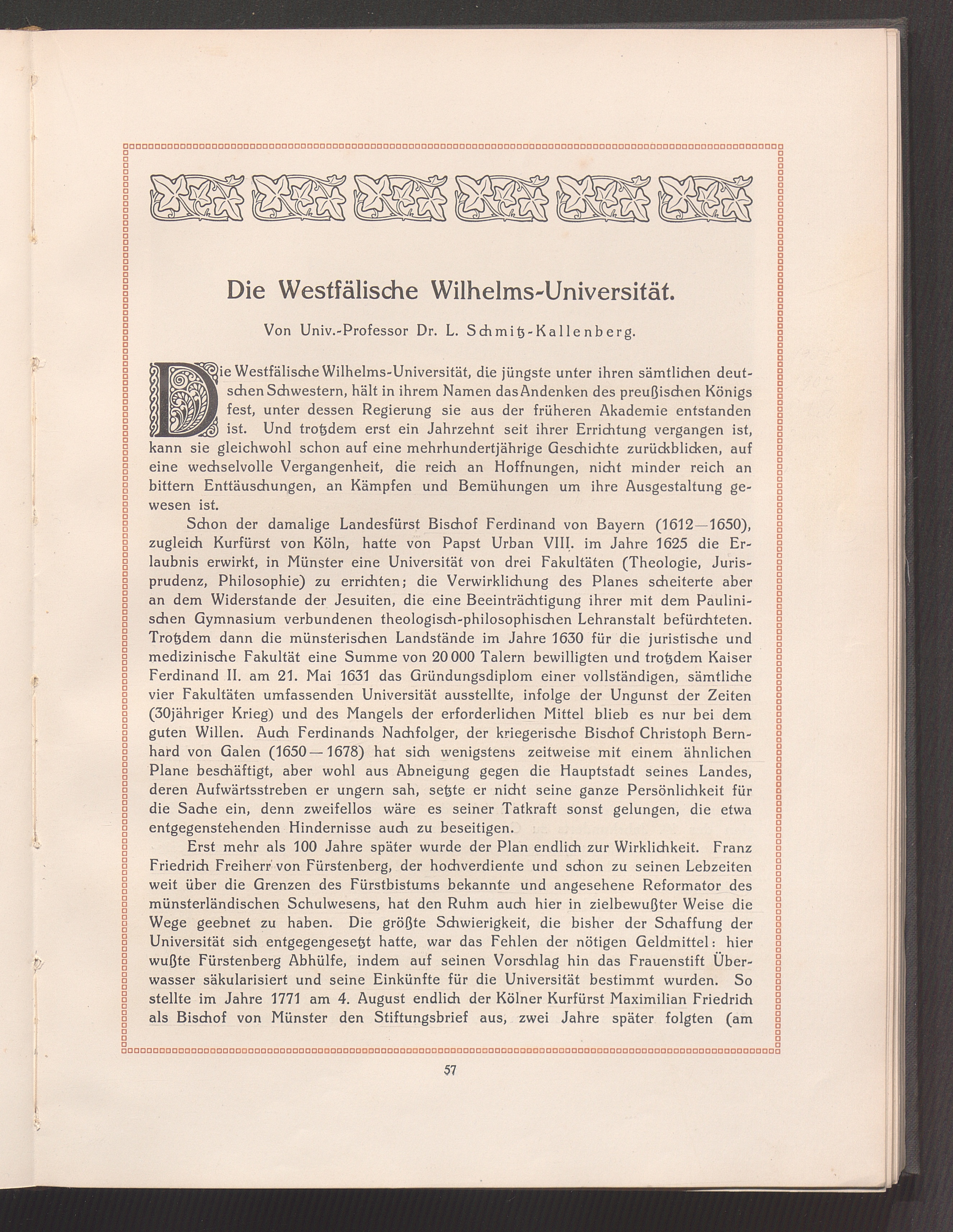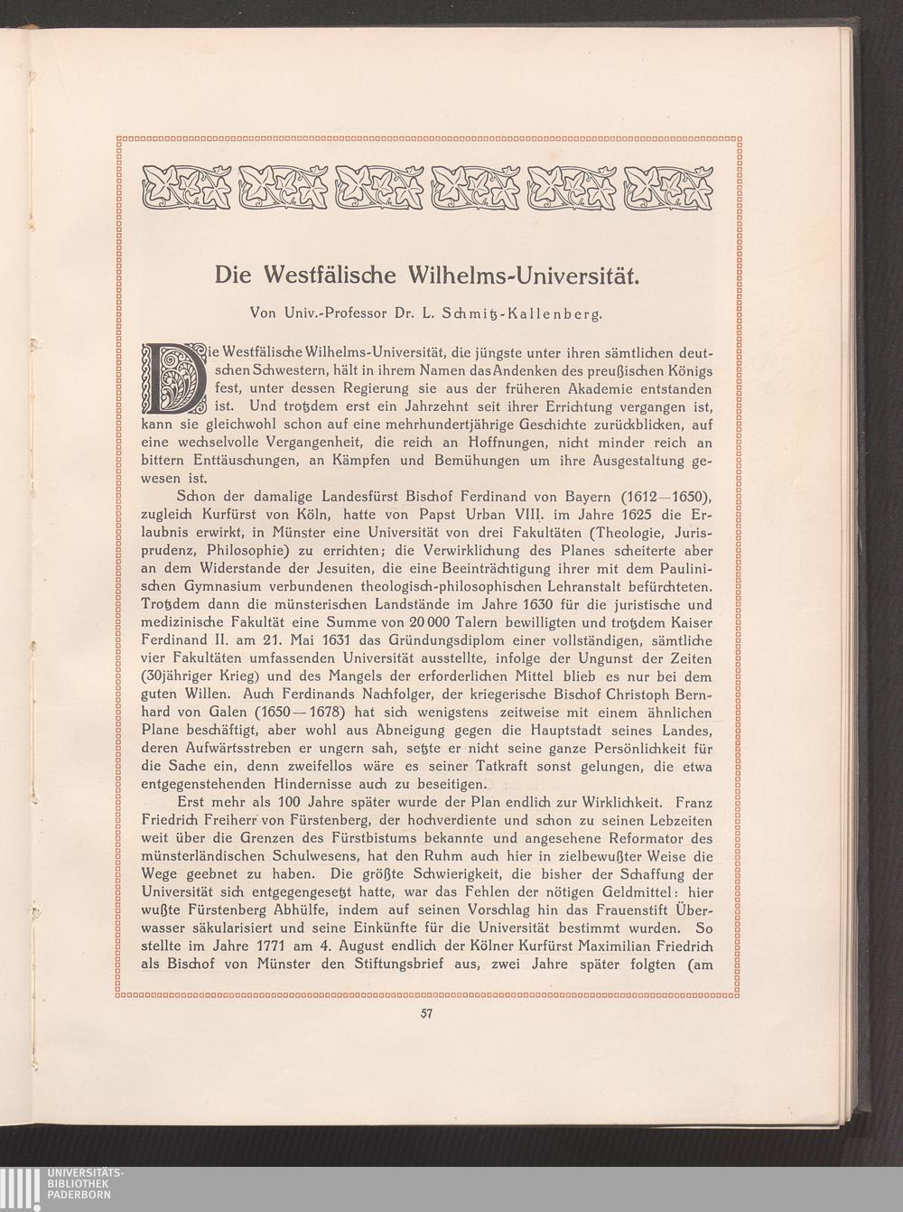 Die Westfälische Wilhelms-Universität. Von Univ.-Professor Dr. L. Schmitz-Kallen[...]