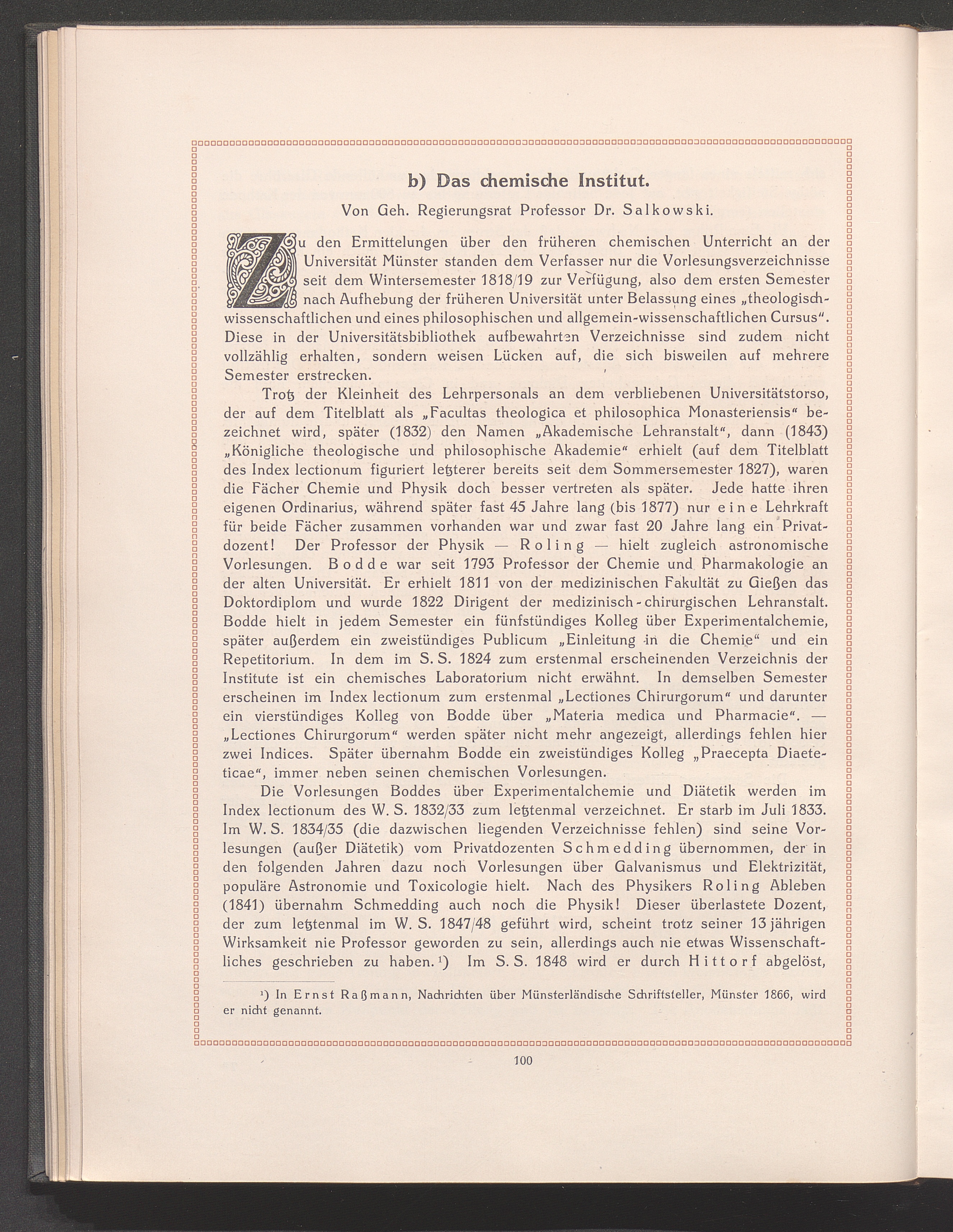 b) Das chemische Institut. Von Geh. Regierungsrat Professor Dr. Salkowski.