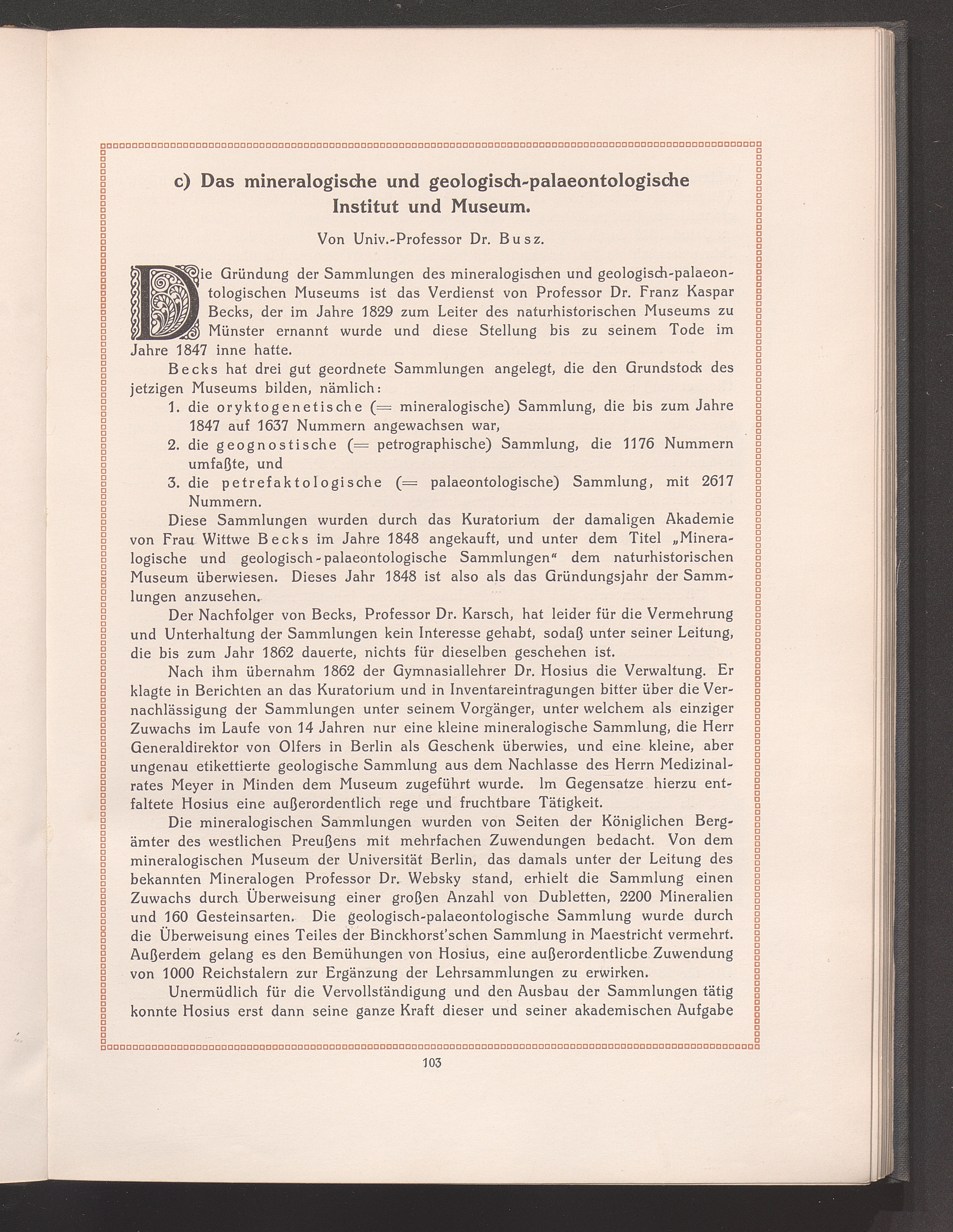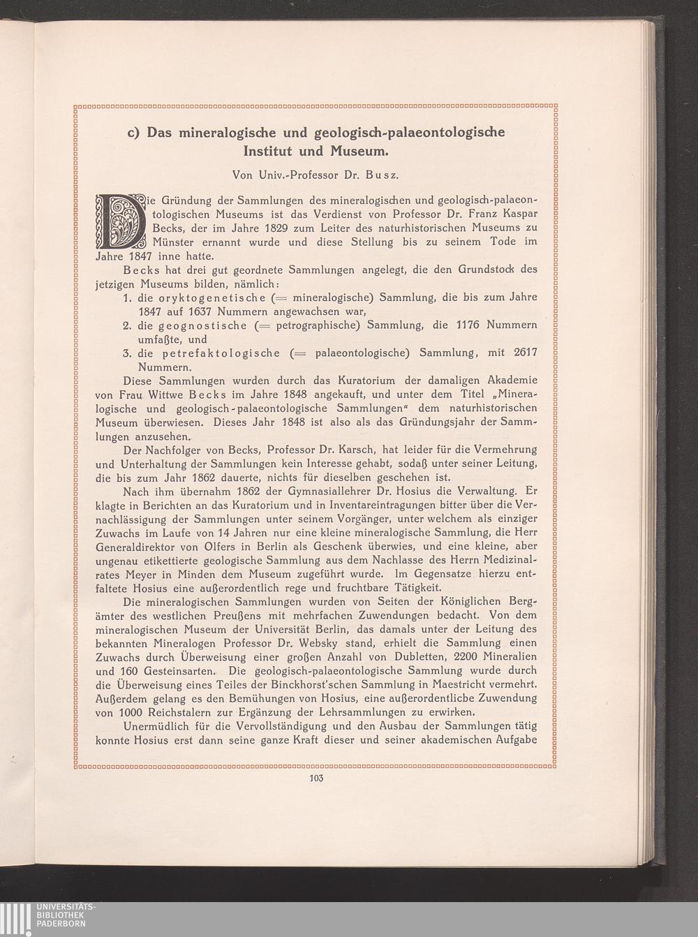 c) Das mineralogische und geologisch-palaeontologische Institut und Museum. Von Univ.-Professor[...]