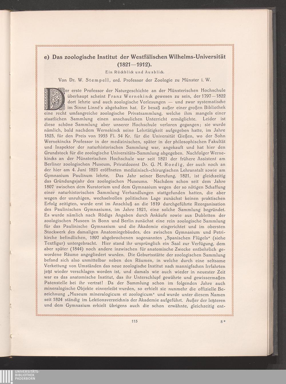 e) Das zoologische Institut. Von Dr. W. Stempell, ord. Professor der Zoologie zu[...]
