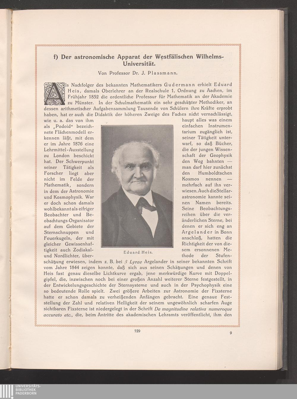 f) Der astronomische Apparat der Universität. Von Professor Dr. J. Plassmann.