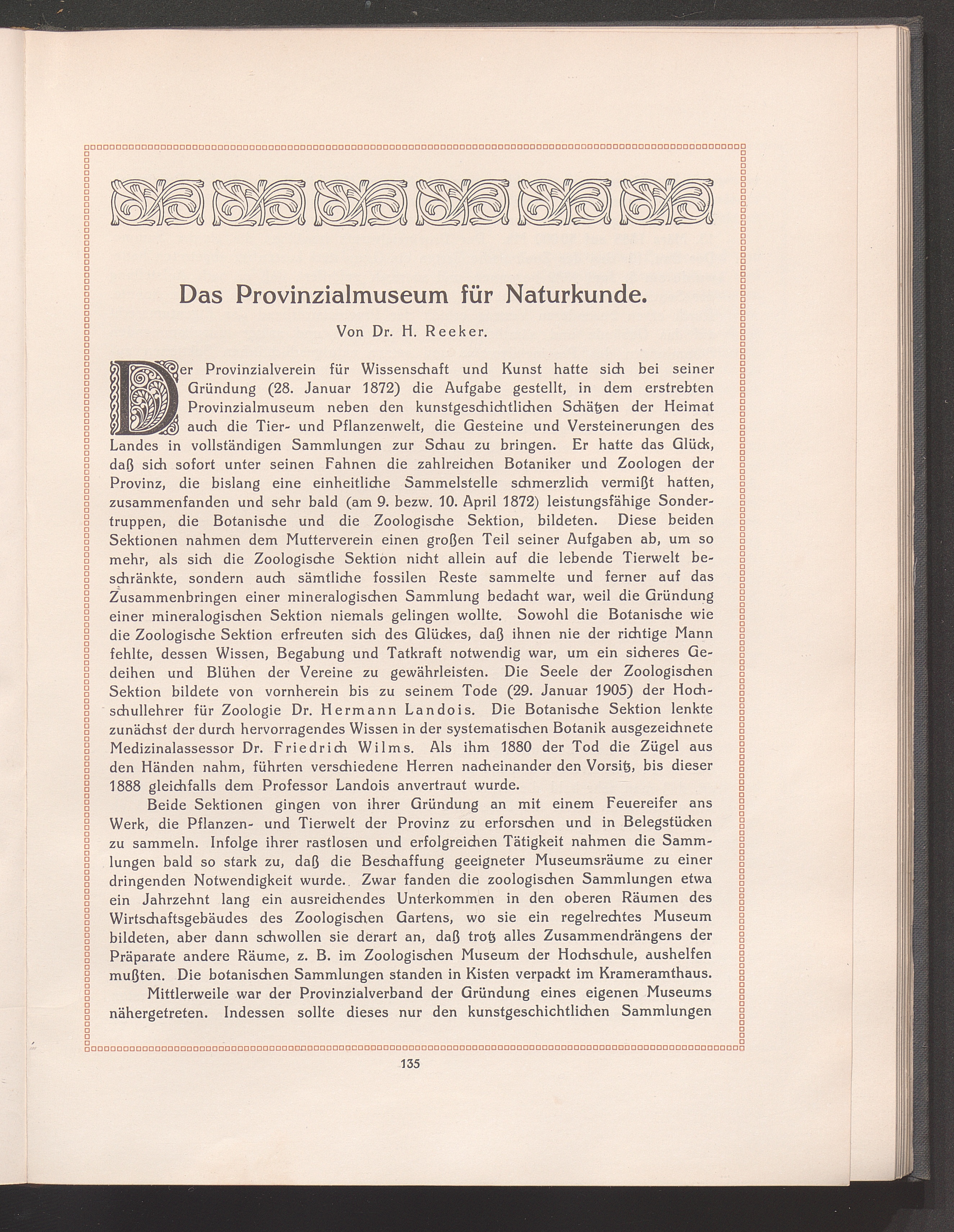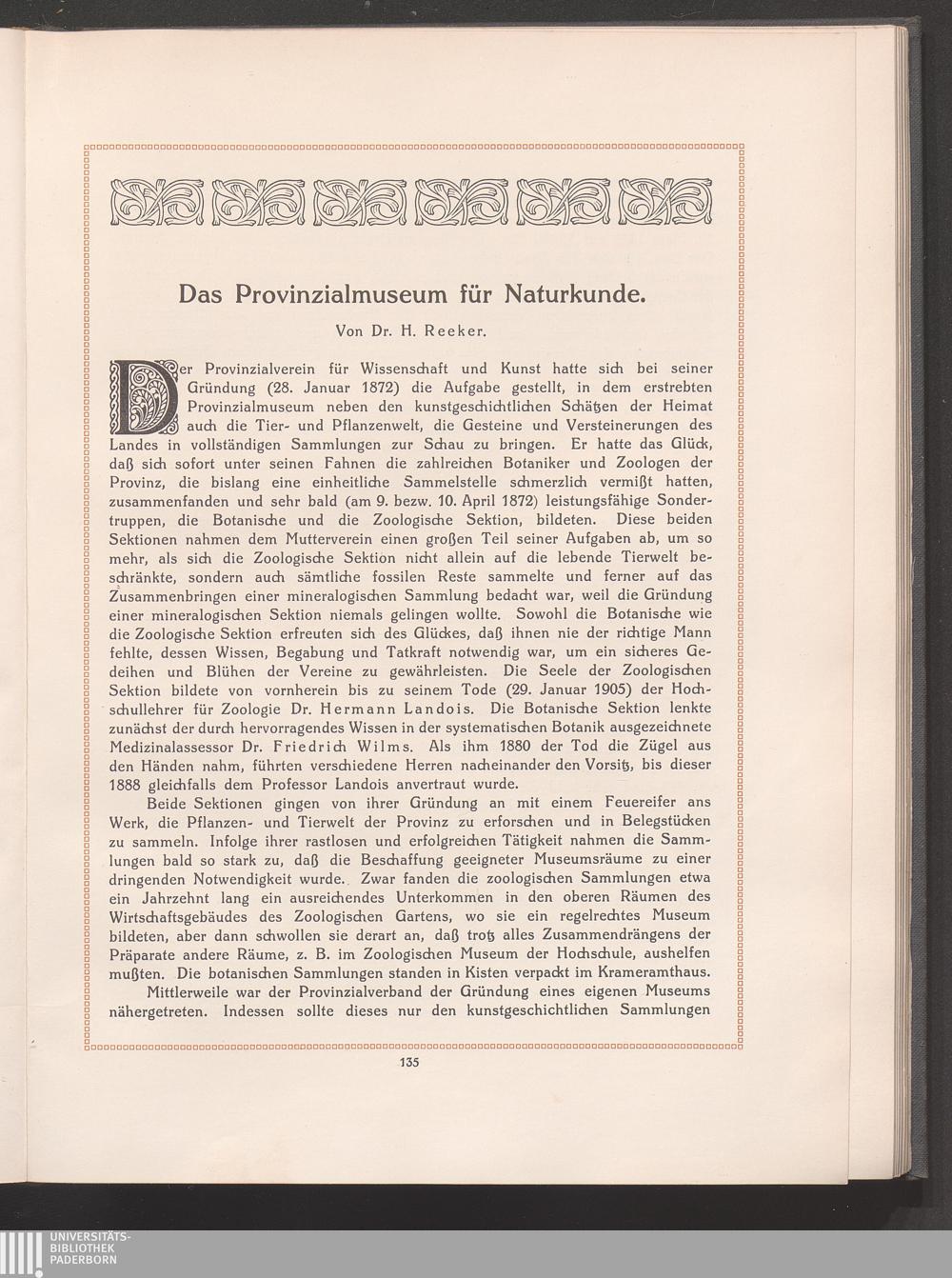 Das Provinzialmuseum für Naturkunde. Von Dr. H. Reeker.