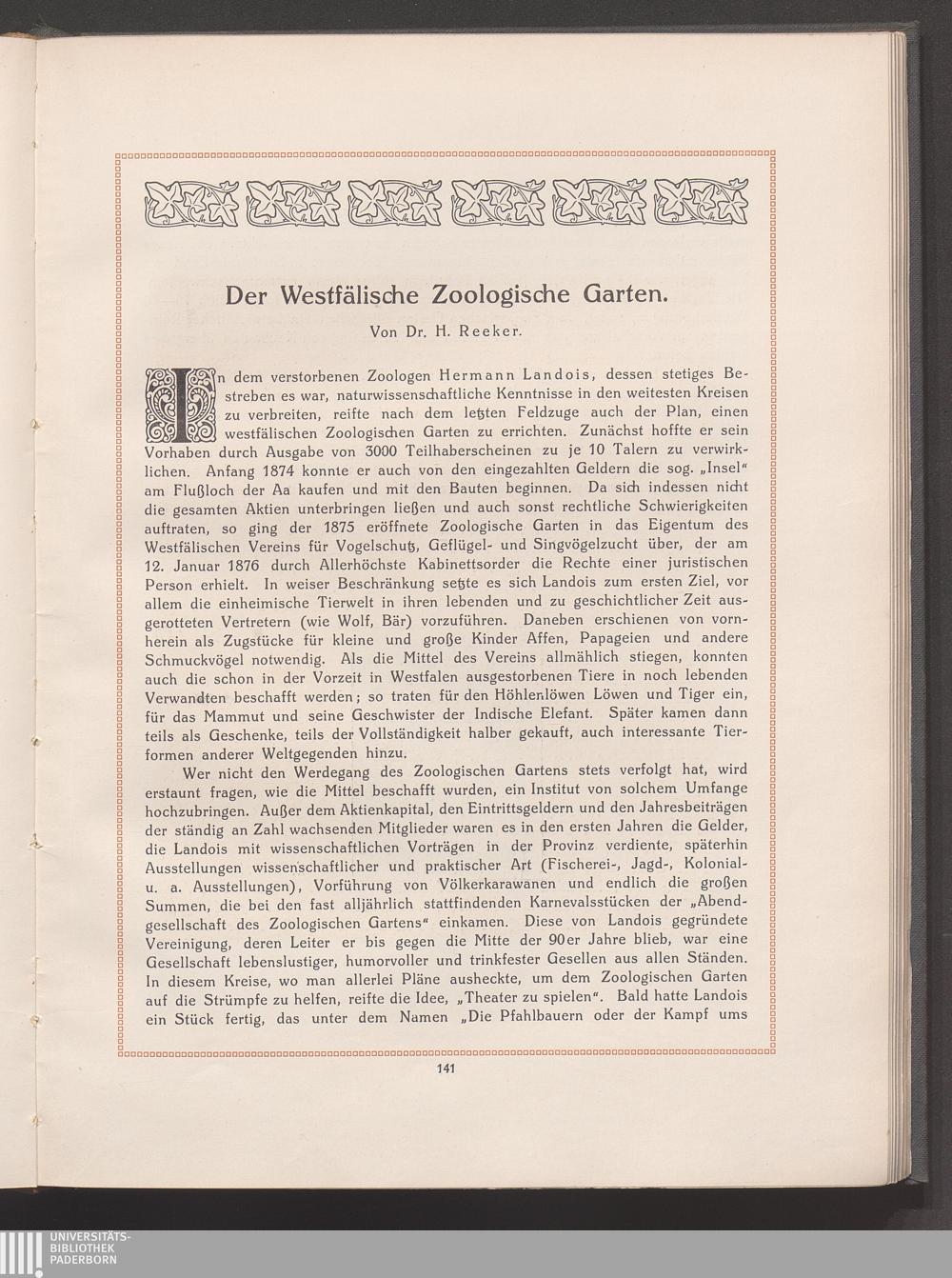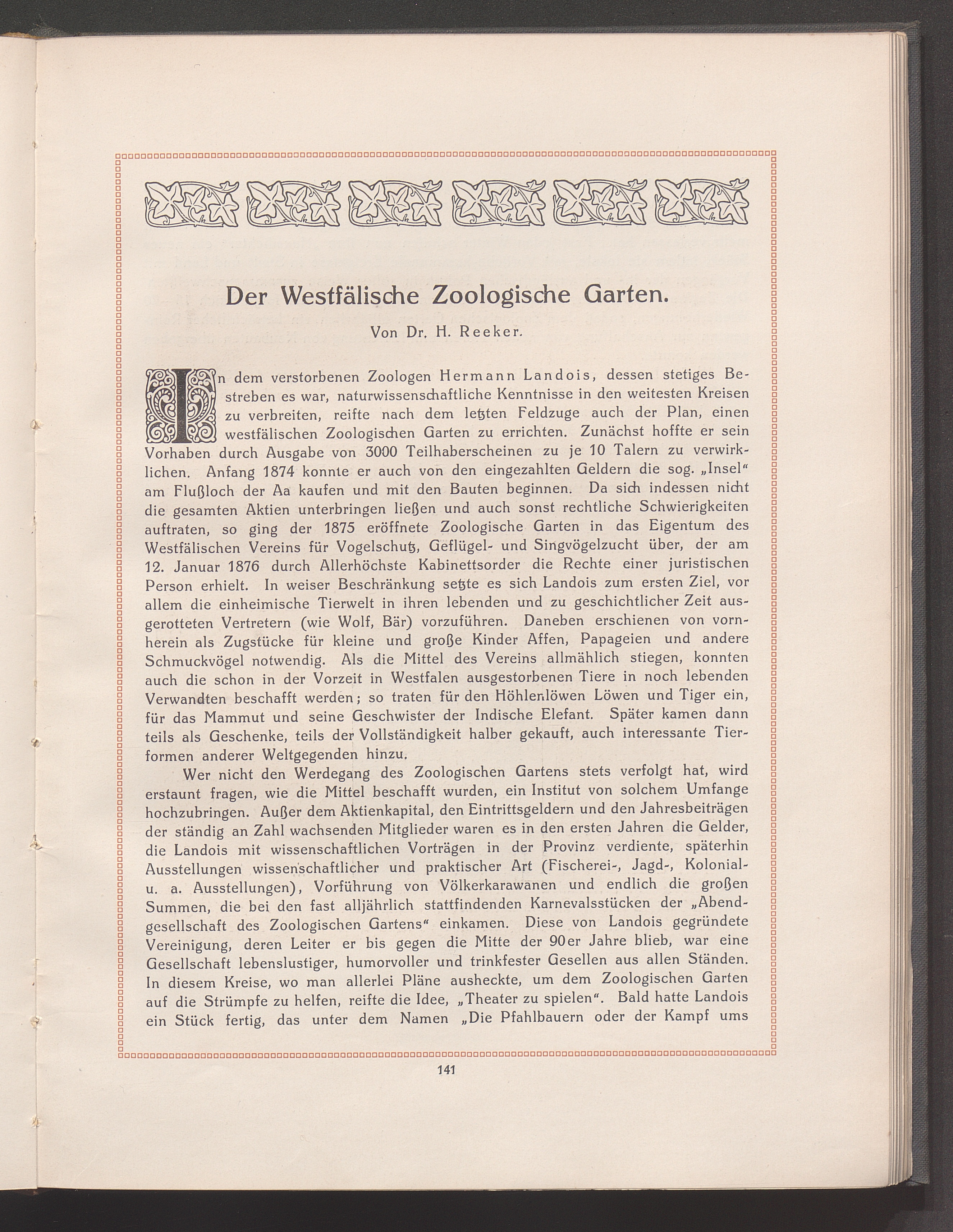 Der Westfälische Zoologische Garten. Von Dr. H. Reeker.