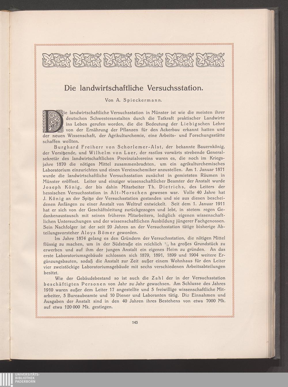 Die landwirtschaftliche Versuchsstation. Von A. Spieckermann.