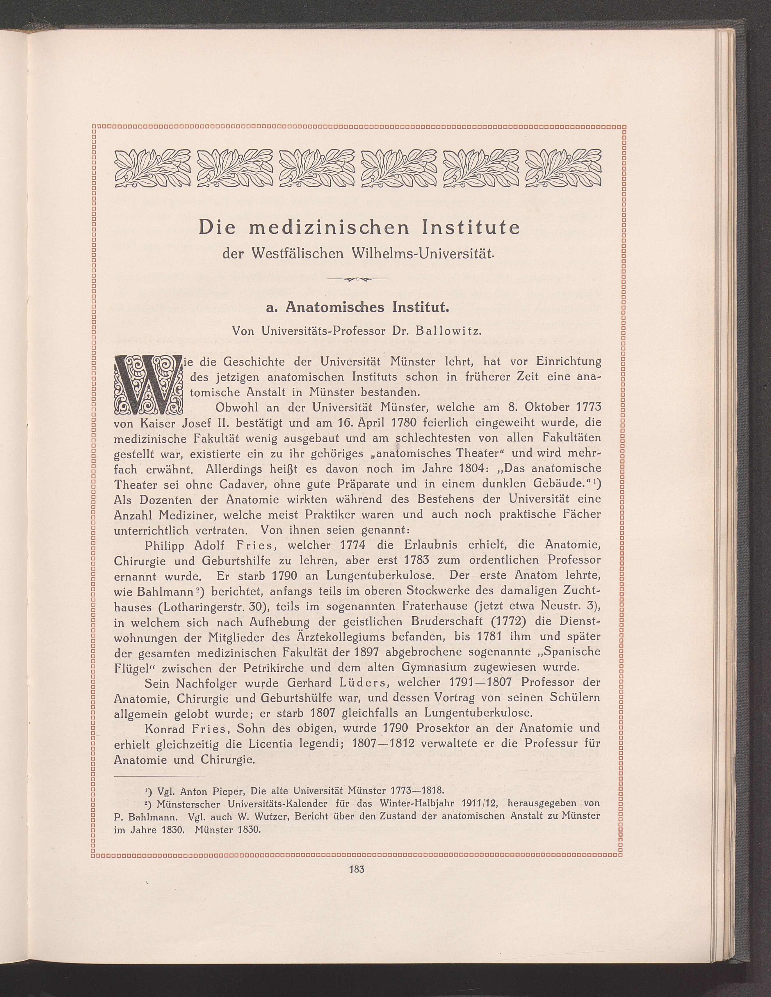 Die Medizinischen Institute der Westfälischen Wilhelms-Universität: