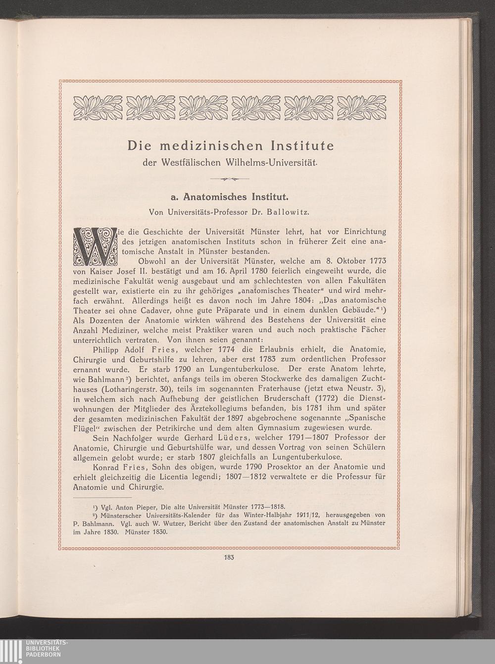 a) Anatomisches Institut. Von Univ.-Prof. Dr. Ballowitz.