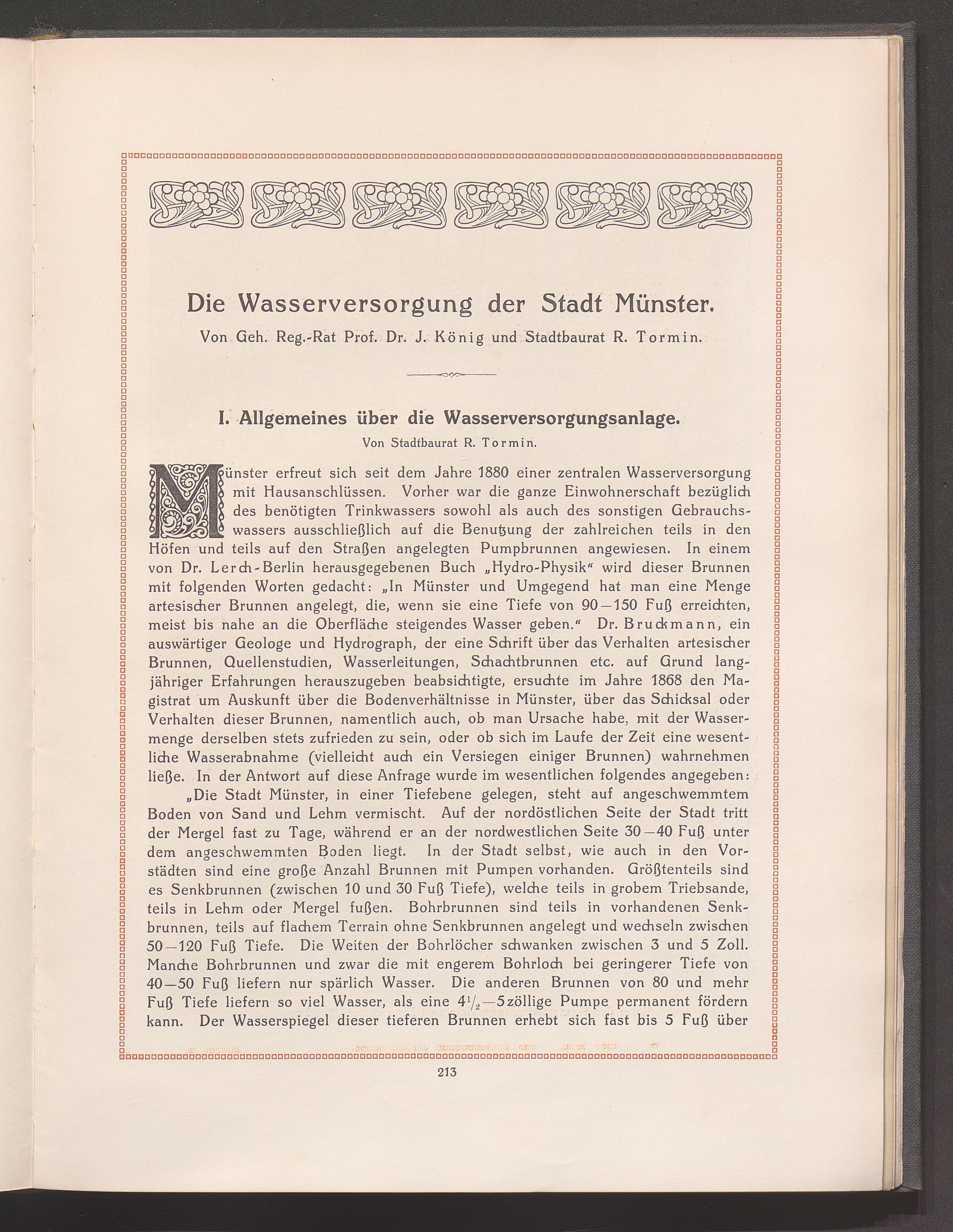 Die Wasserversorgung der Stadt Münster. Von Geh.-Rat Prof. Dr. J. König und Stadtbaurat[...]