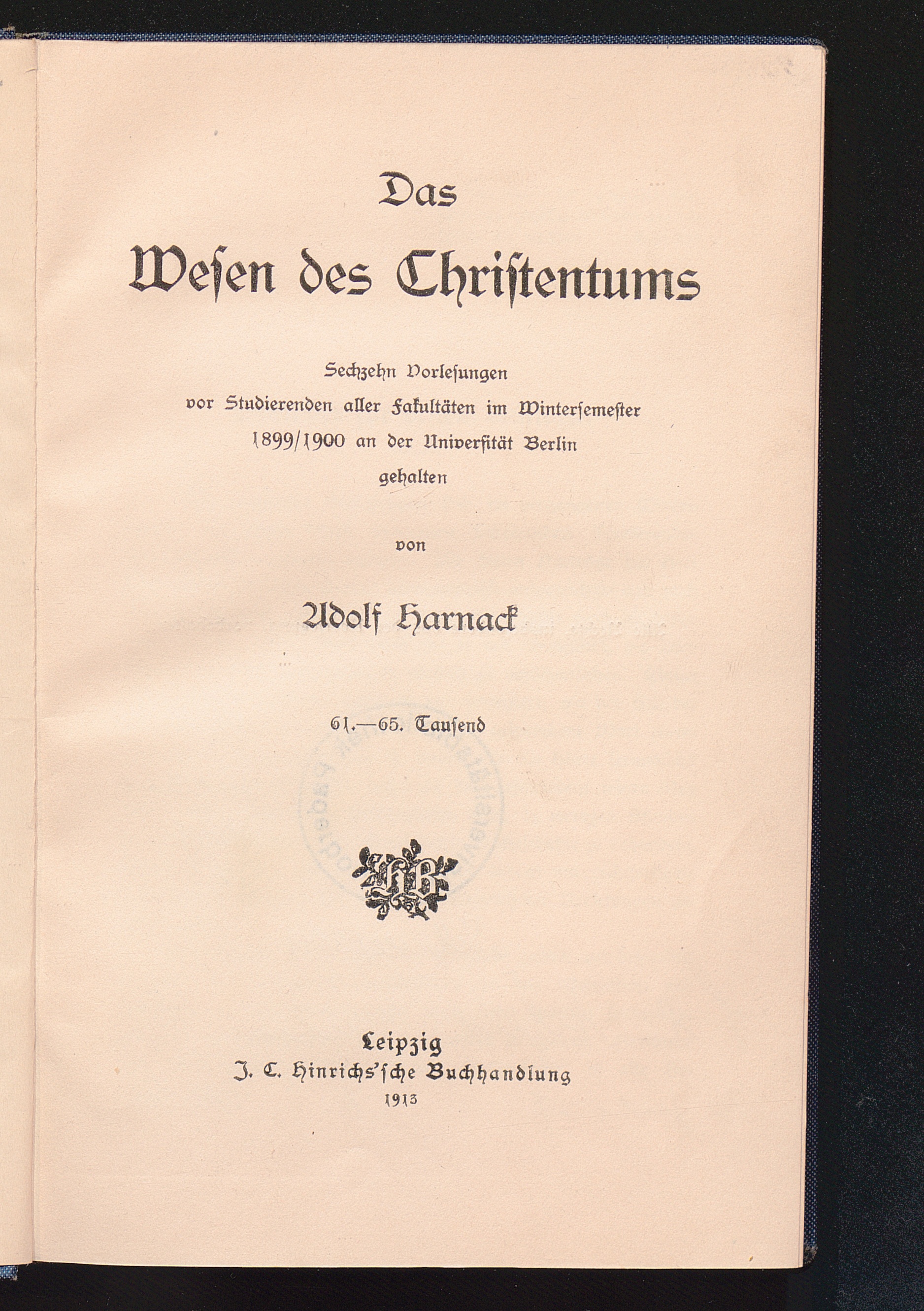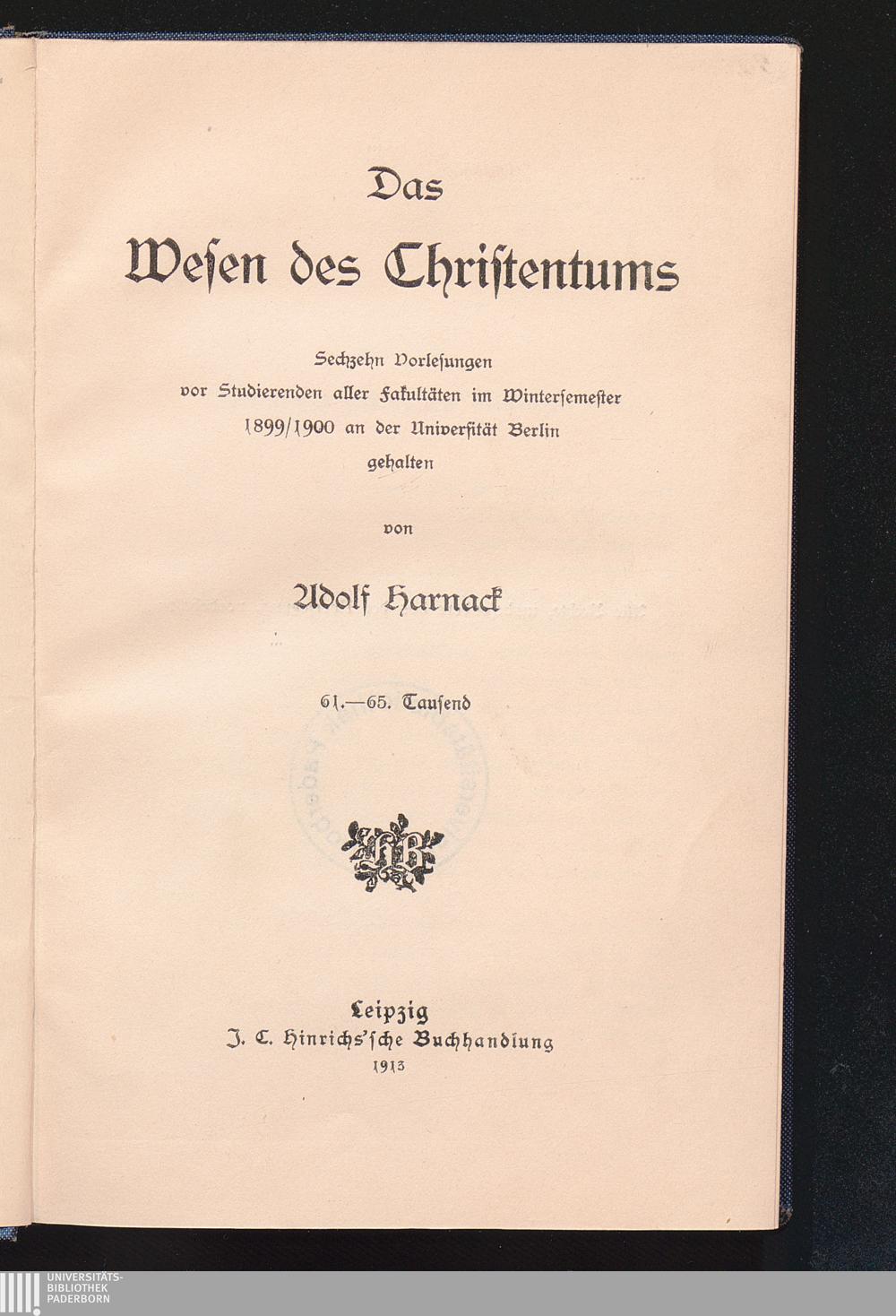 Das Wesen des Christentums : sechzehn Vorlesungen der Studierenden aller Fakultäten im Wintersemester 1899/1900 an der Universität Berlin gehalten / von Adolf Harnack