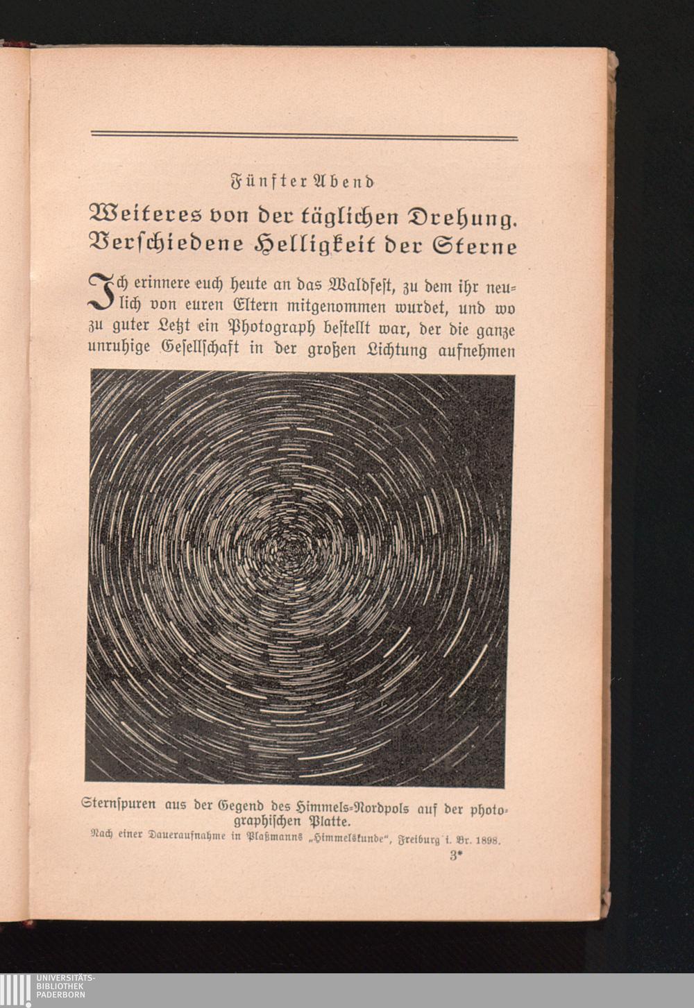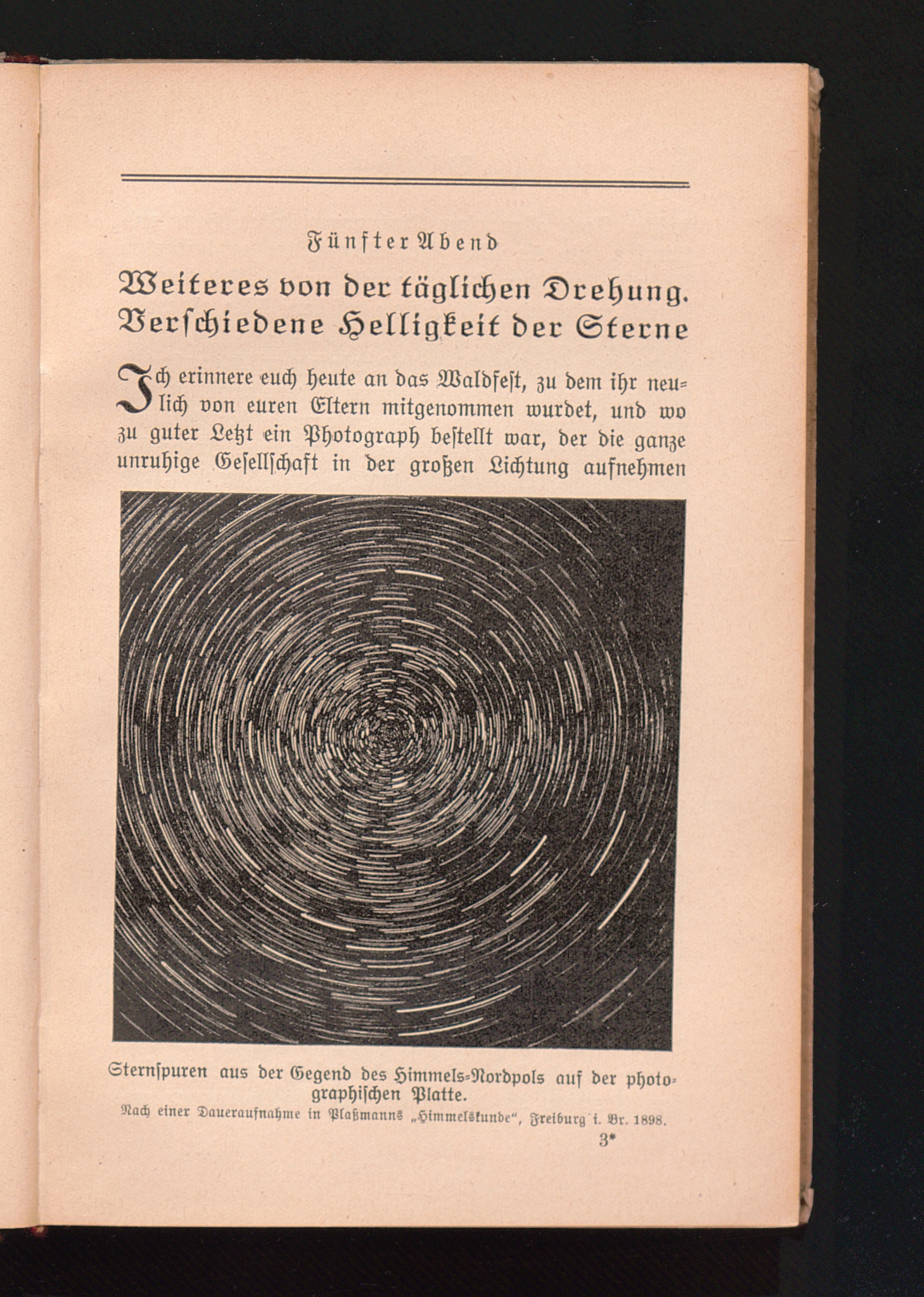 5. Abend: Weiteres von der täglichen Drehung. Verschiedene Helligkeit der Sterne