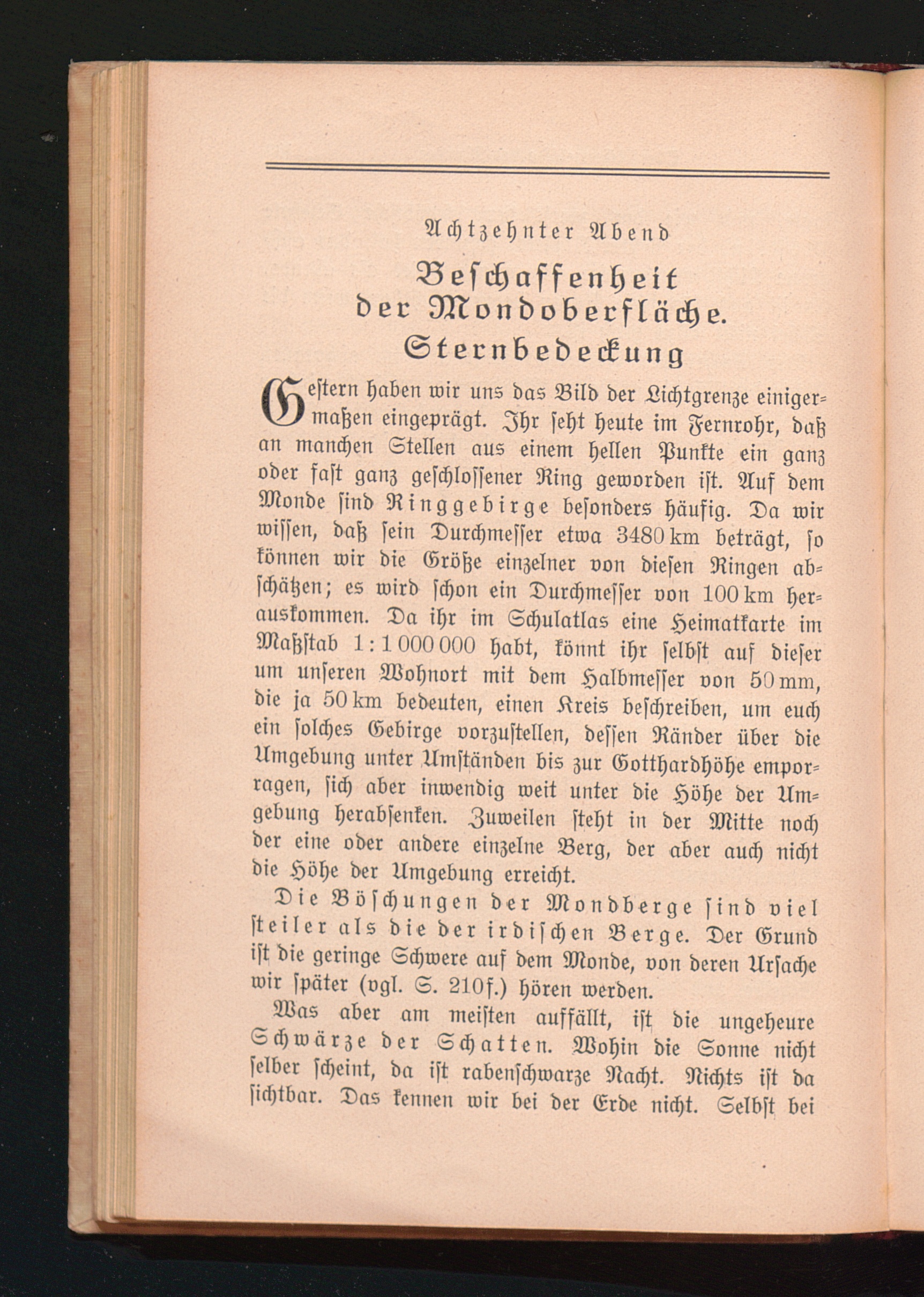 18. Abend: Beschaffenheit der Mondoberfläche. Sternbedeckung