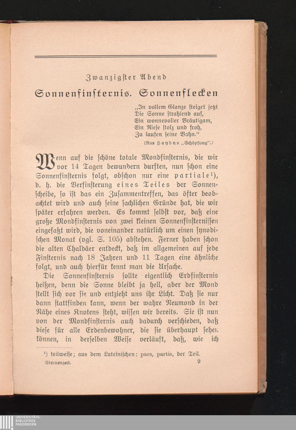 20. Abend: Sonnenfinsternis. Sonnenflecken