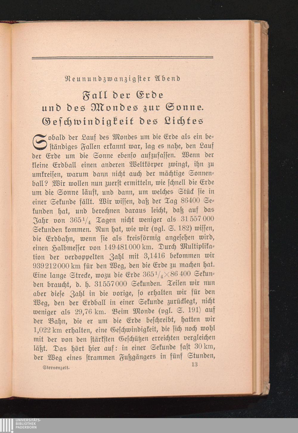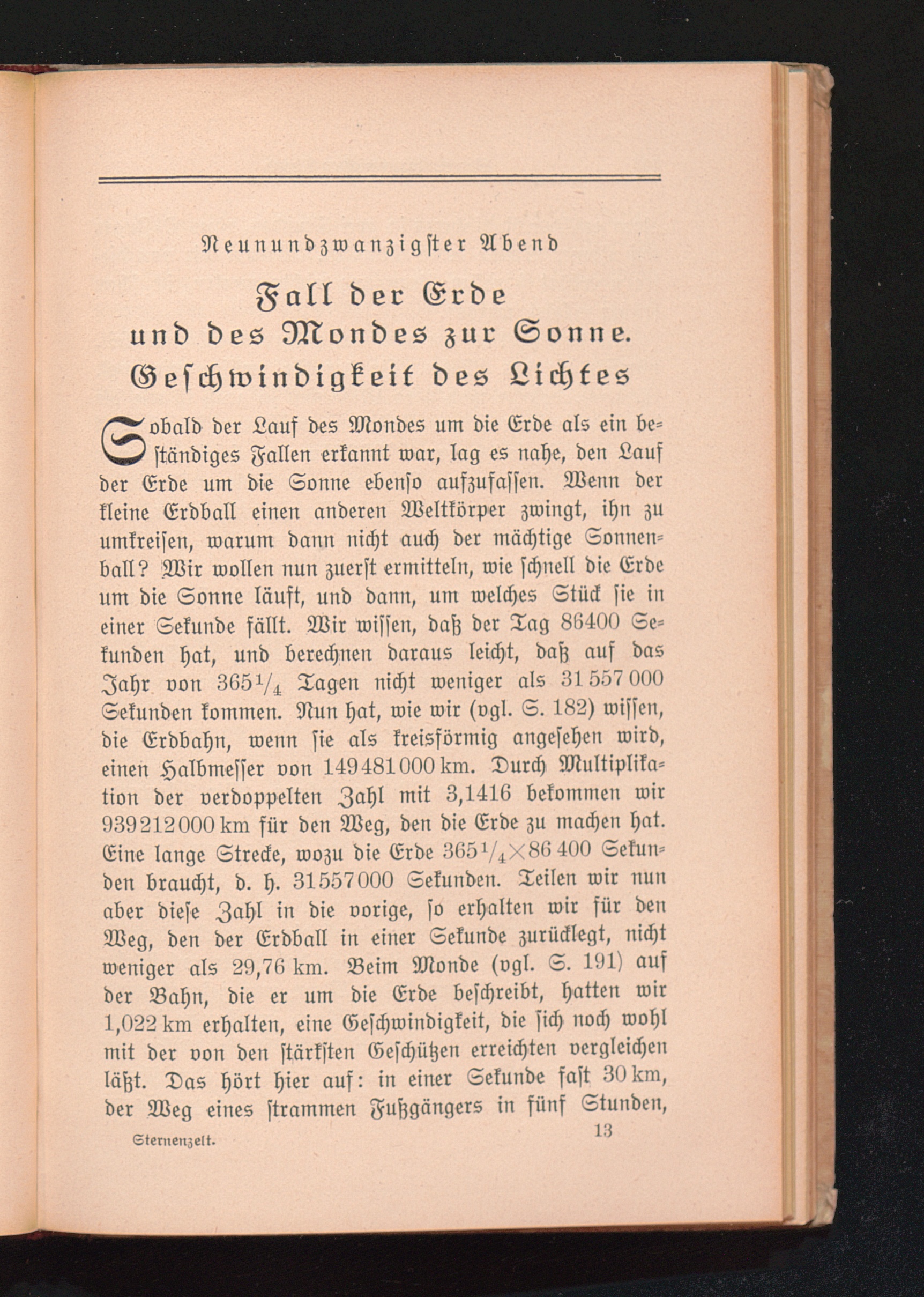 29. Abend: Fall der Erde und des Mondes zur Sonne. Geschwindigkeit des Lichtes