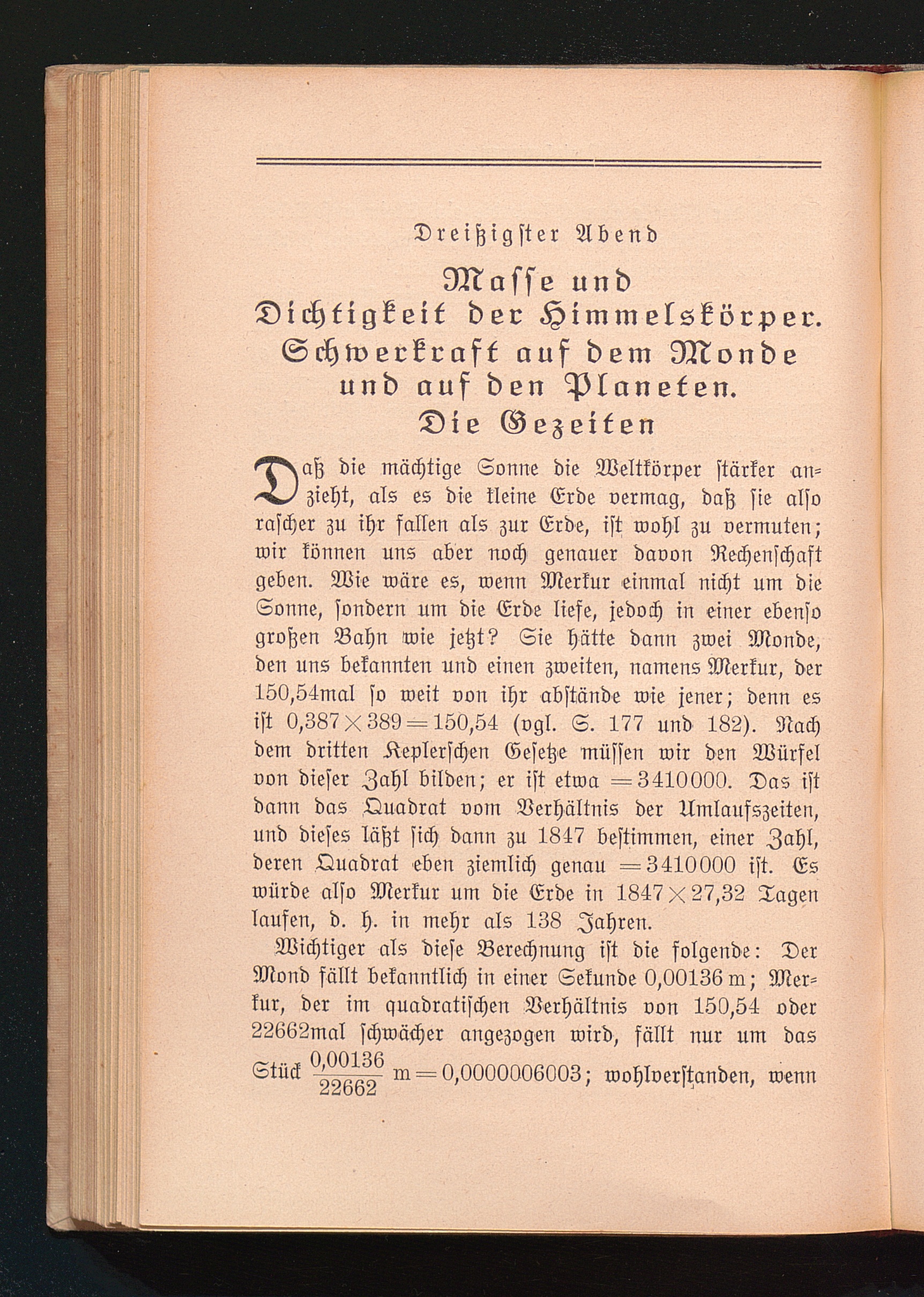 30. Abend: Masse und Dichtung der Himmelskörper. Schwerkraft auf dem Monde und auf[...]