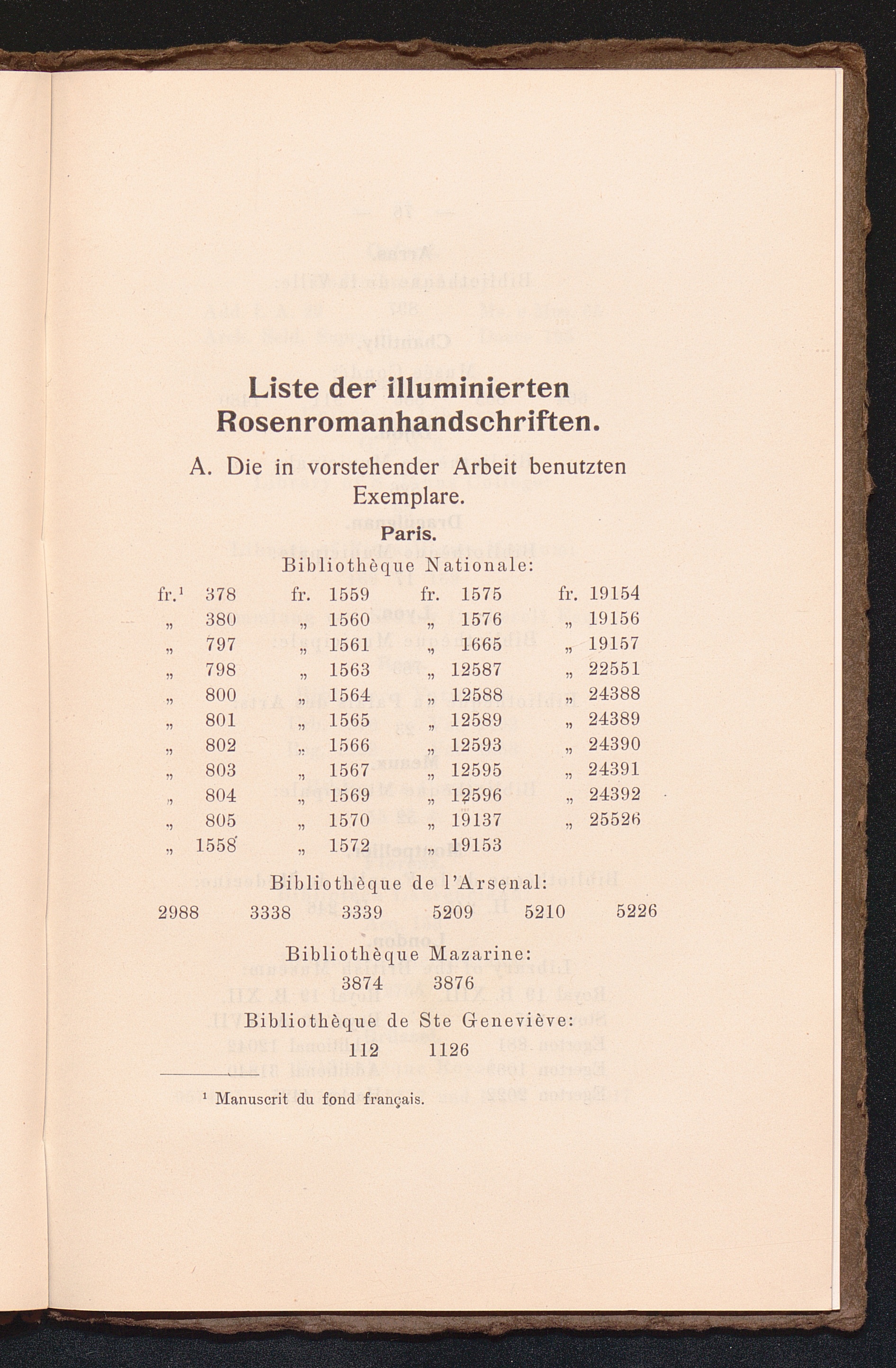 Anhang. Liste der illustrierten Rosenromanhandschriften