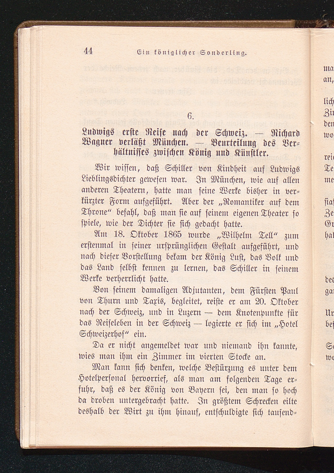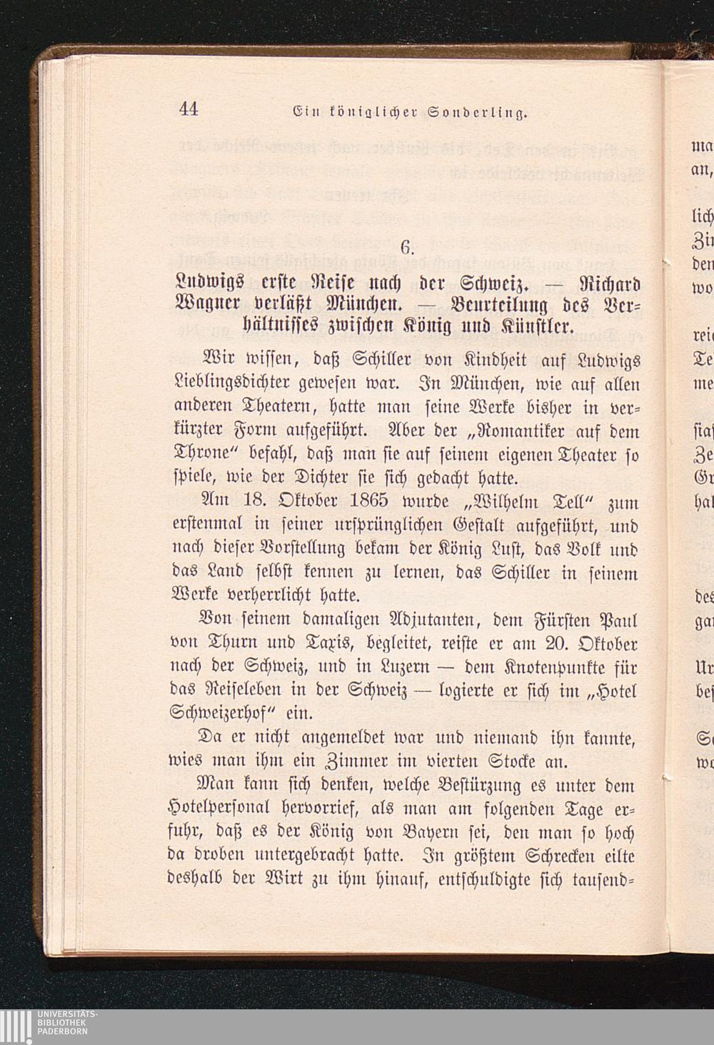 6. Ludwigs erste Reise nach der Schweiz. - Richard Wagner verläßt München. - Beurteilung[...]