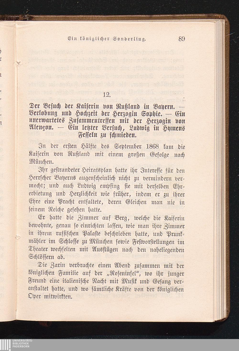12. Der Besuch der Kaiserin von Rußland in Bayern. - Verlobung und Hochzeit der Herzogin[...]