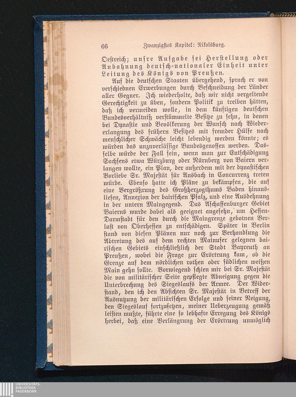 Seine Erregung über Bismarck´s Widerspruch.