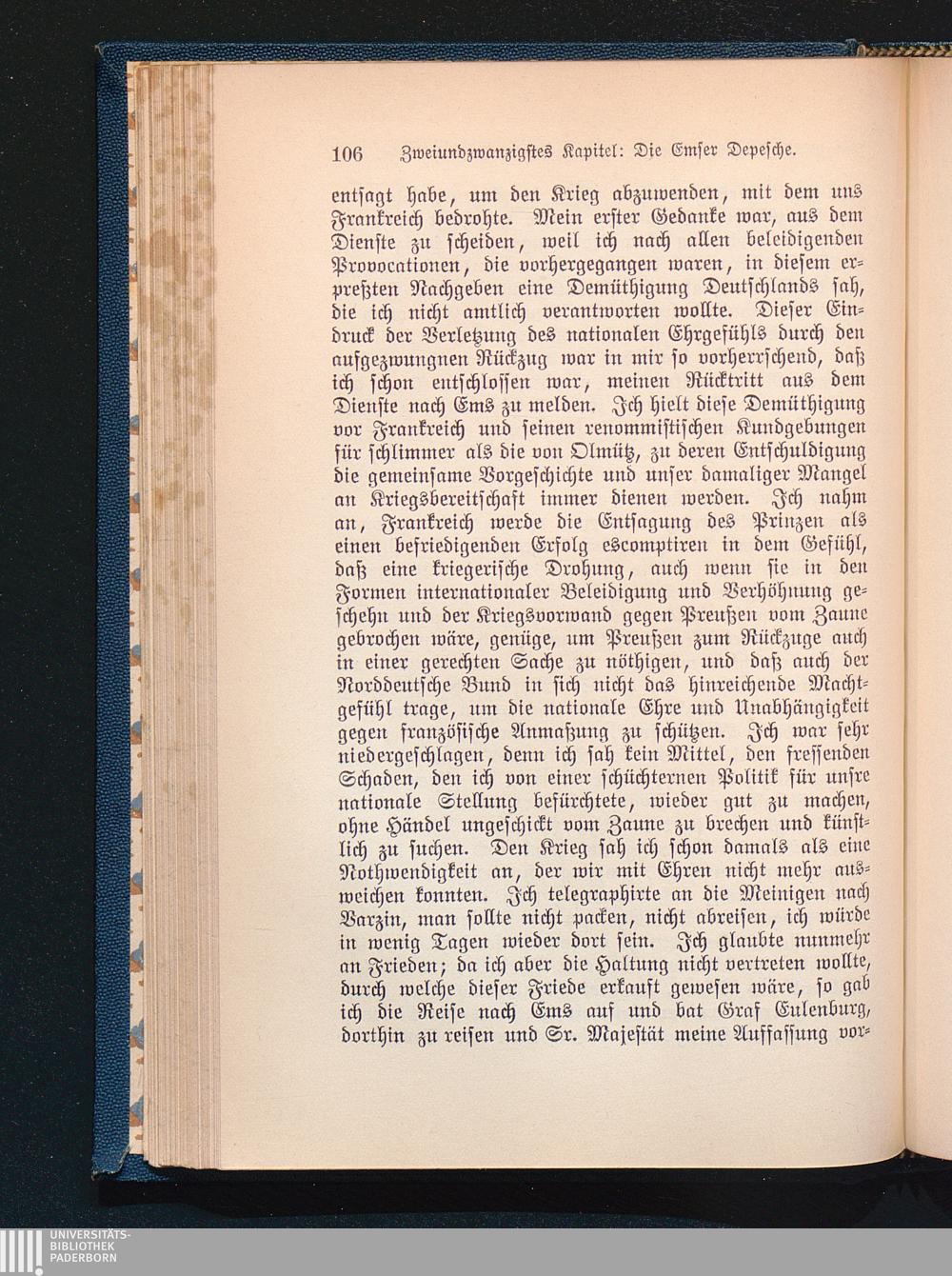 Zweiundzwanzigstes Kapitel: Die Emser Depesche