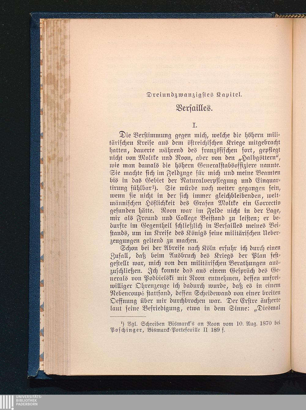 Bismarck wird Ohrenzeuge eines Gesprächs des Generals v. Podbielski mit Roon über[...]