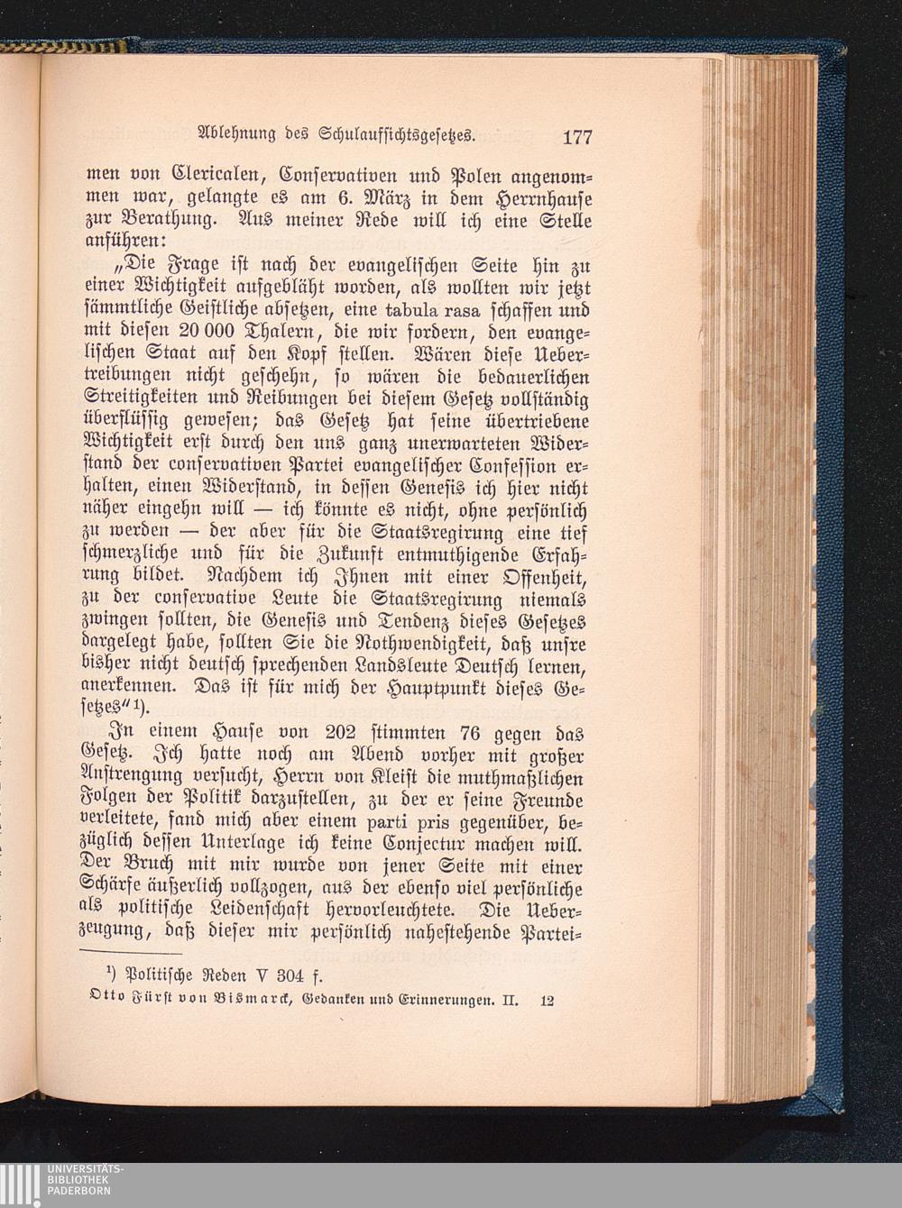 Bruch der conservativen Partei mit Bismarck.