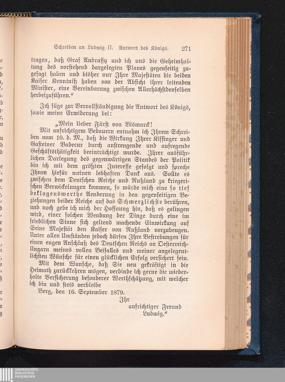 Antwort des Königs von Baiern und Bismarck´s Replik.