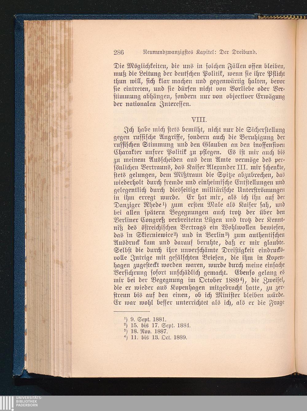 VIII. Vertrauen Alexander´s III. zu Bismarck´s friedlicher Politik.
